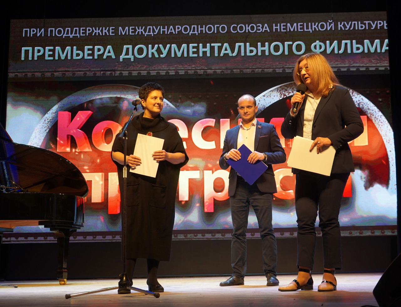 Одним из активных создателей и спикеров фильма была депутат Совета Депутатов Городского округа Коломна, в прошлом начальник УВСиКК Коломенского завода Е.В. Бычкова, которая вспомнила, что сотрудничество нашего предприятия и местной немецкой национально-культурной автономии города Коломны продолжается на протяжении вот уже 15 лет. "Мы делали проекты в разных форматах, – рассказала Екатерина Владимировна, – издавали книги, делали выставки, презентации, записывали музыкальные диски, четыре года назад в Коломне появился музыкальный фестиваль им. Николая Струве. Сегодня мы представили новый формат. Хочется вспомнить слова Аманда Струве: "Только в содружестве всех лиц, причастных к делу, лежит сила, способная одолеть препятствия".