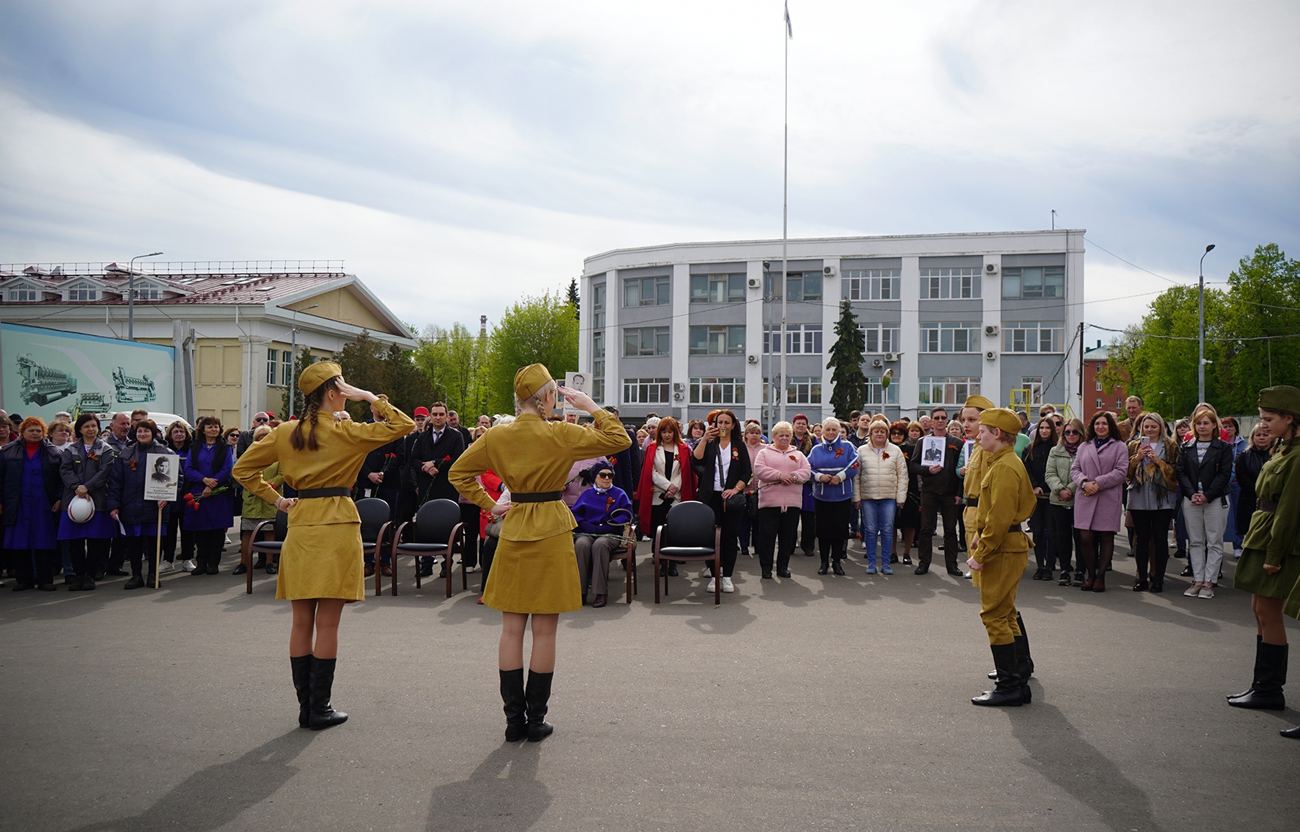 Заводчане возложили венки и цветы к Вечному огню заводского мемориала. Затем члены заводского Совета ветеранов, профсоюзного комитета и Инженов приняли участие в городском памятном митинге у Мемориального комплекса «Воинам-землякам, погибшим в годы Великой Отечественной войны 1941-1945 гг.» на Старом кладбище. Здесь среди 651 останков воинов покоятся 15 бойцов построенного в 1941 году на Коломенском заводе бронепоезда № 1 "За Сталина".