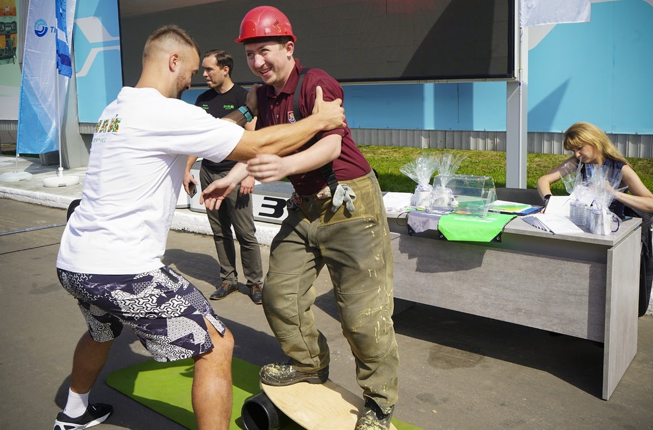 Желающим проверить свои силы было необходимо простоять как можно дольше на баланс-борде, поднять штангу и выполнить жим гири. Оказалось, что на Коломенском заводе трудится много спортивных мужчин и женщин, поэтому все участники упорно боролись за первое место.