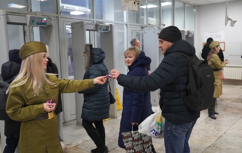 А с раннего утра на проходных предприятия мужчин ждал приятный сюрприз: играла праздничная музыка и прекрасные заводчанки в форме встречали поздравлениями всех представителей сильного пола, вручая им ленточки триколор.