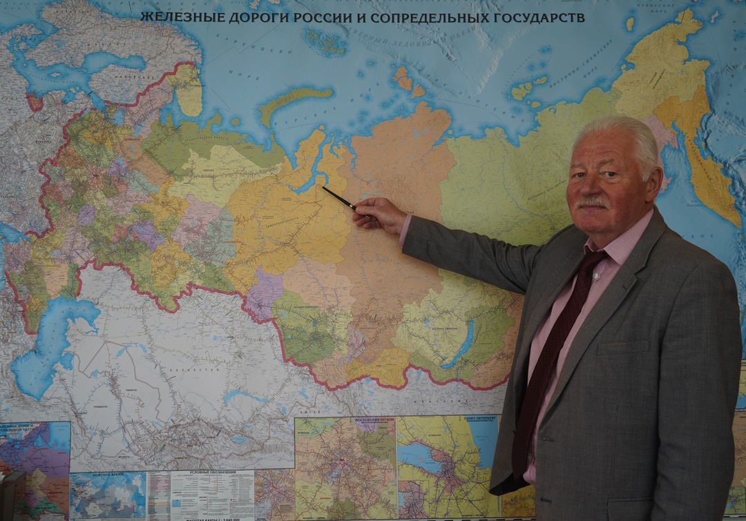 Все эти годы ДППО возглавляет Александр Евграфов (фото на фоне карты железных дорог России).