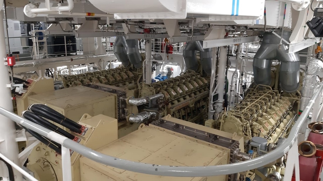 Главная энергетическая установка корабля состоит из двух дизель-генераторов 3-10Д49 и дизель-генератора 4-10Д49, мощностью по 3,5 МВт каждый, разработанных Инжиниринговом центром двигателестроения ТМХ совместно с компанией «Русэлпром-МС» и изготовленных на Коломенском заводе, который входит в состав компании «ТМХ-Энергетические решения».