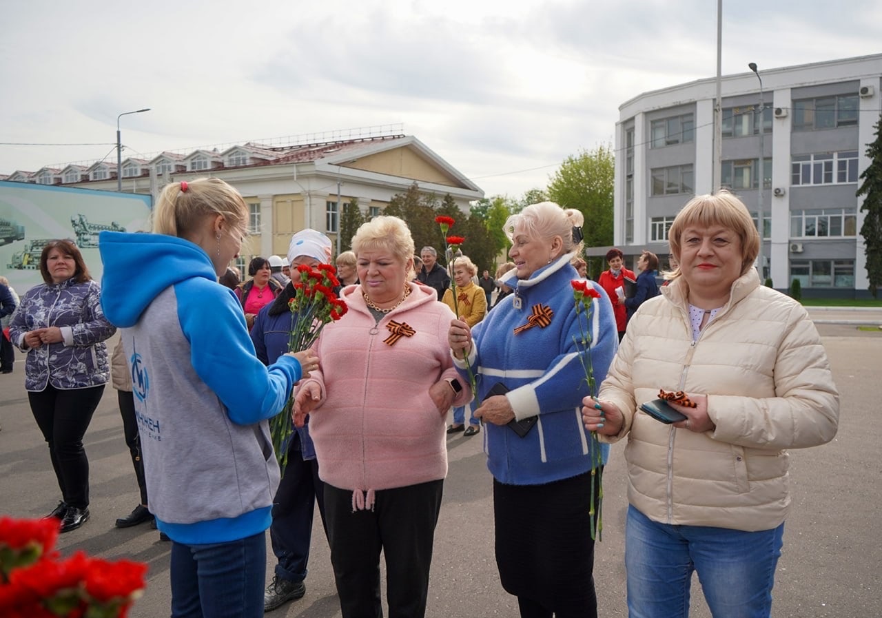 Представители молодежного совета раздали ленточки и гвоздики сотрудникам предприятия для возложения к мемориалу «Памяти павших будьте достойны».