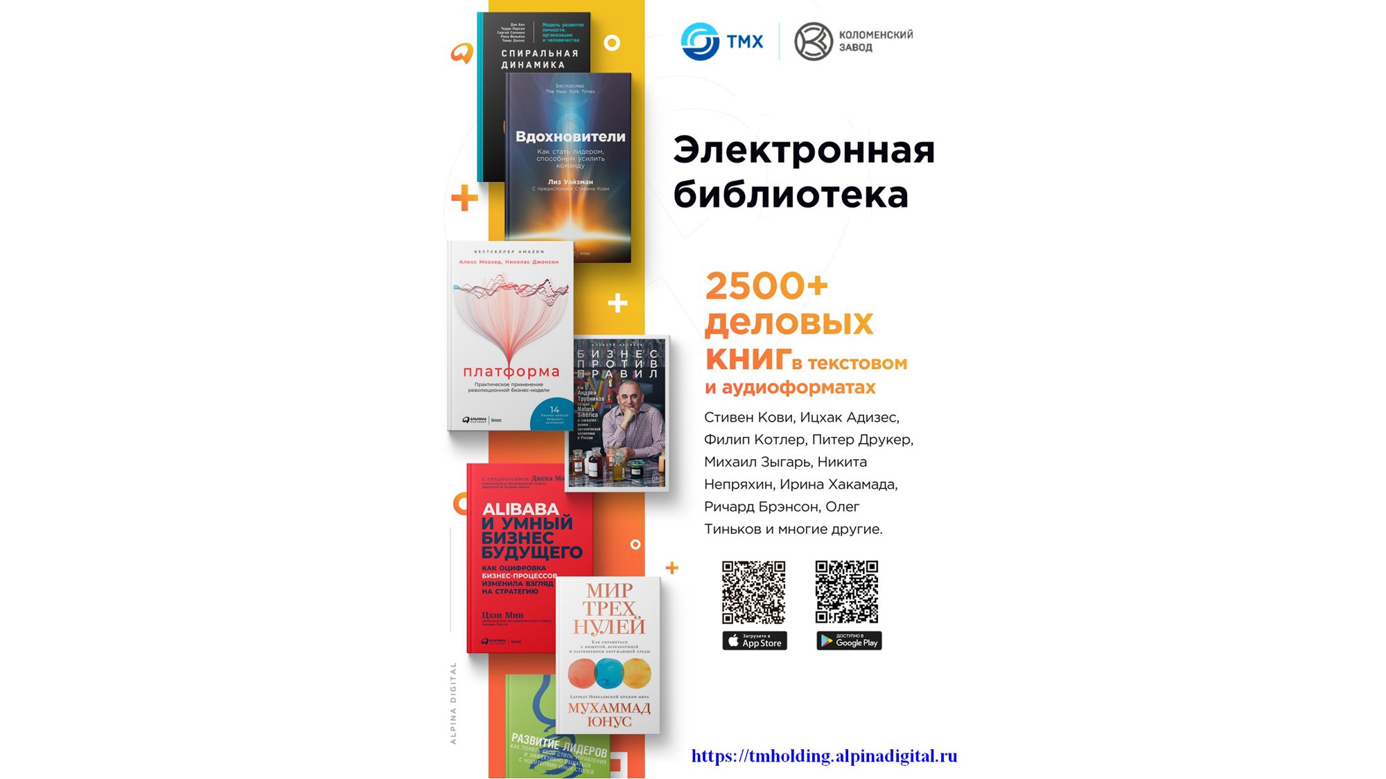 В 2018 году на Коломенском заводе был запущен и в данный момент успешно реализуется HR-проект «Деловая библиотека АО «Трансмашхолдинг» (библиотека «Alpina Digital»). Он открыл уникальные возможности для развития компетенций, лидерских качеств руководителей, специалистов и работников предприятия.