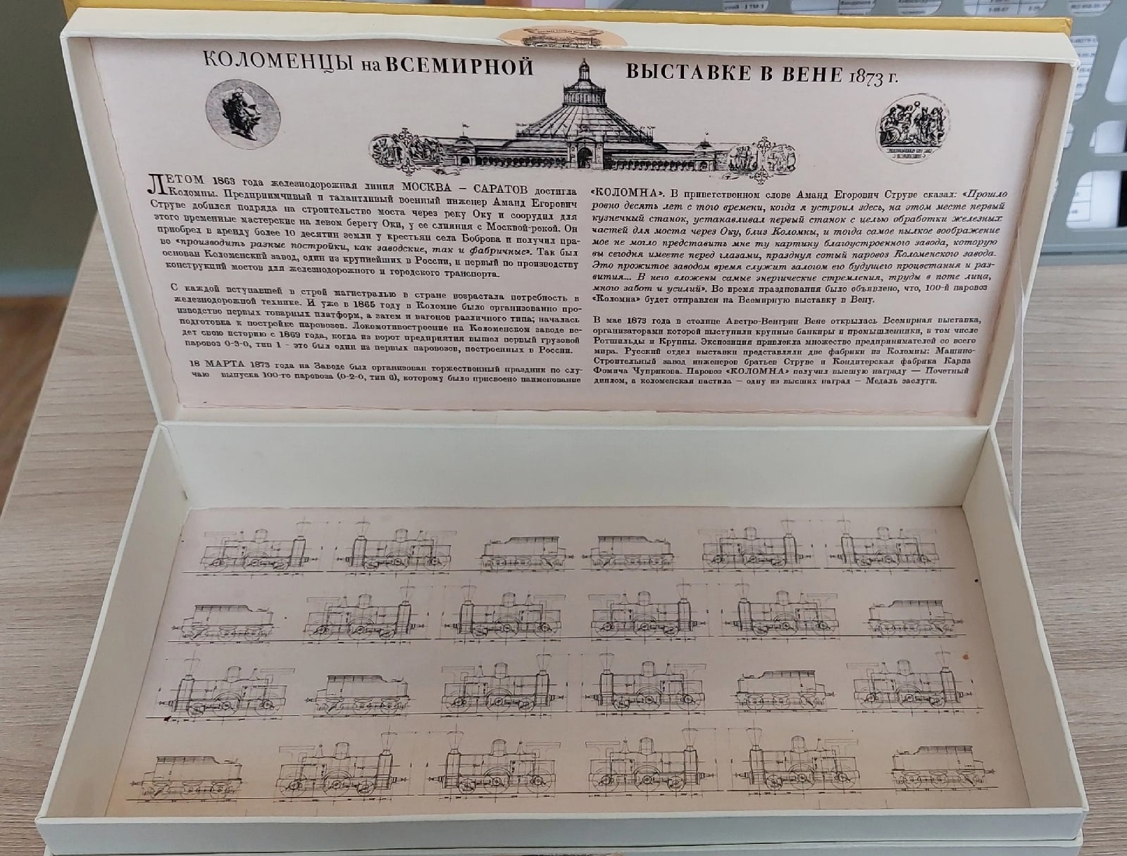 Внутри коробки можно подробнее узнать о первых десяти годах становления завода и о том, чем связаны два наших коломенских предприятия.