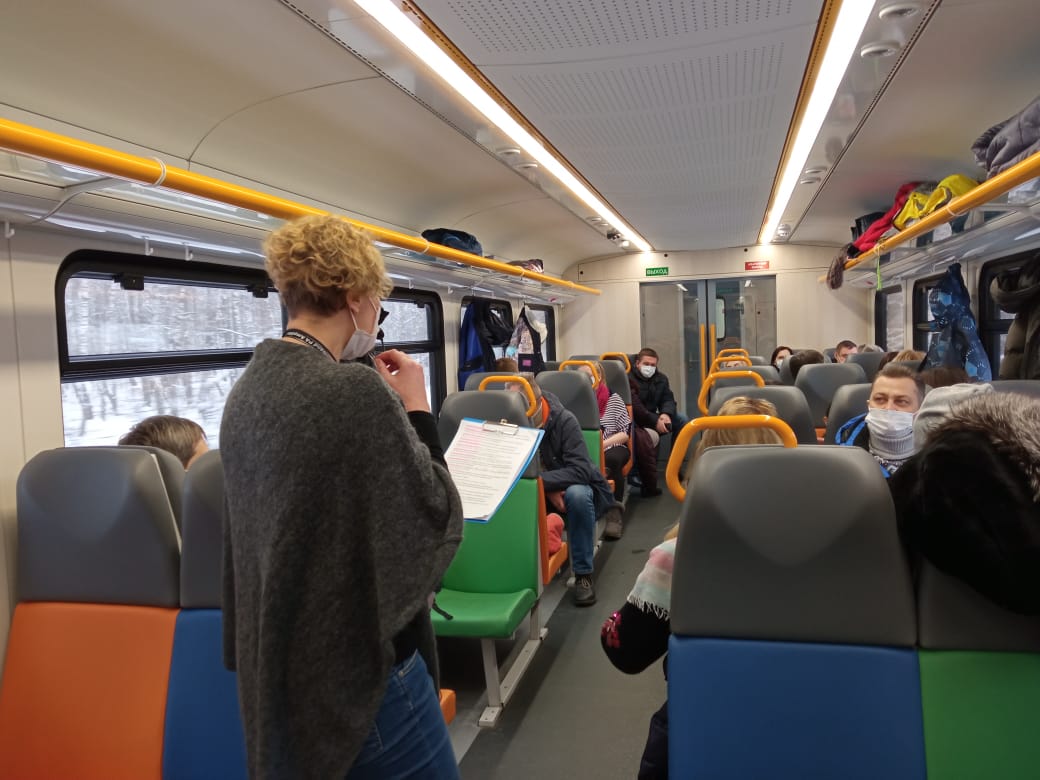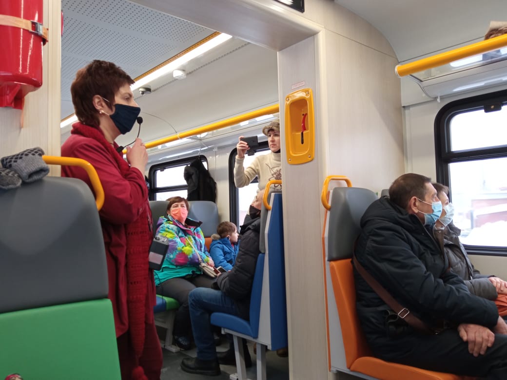 Под стук колес поезда, следующего от станции "Голутвин" до Озёр (и обратно), докладчики затронули немало интересных тем, касающихся истории тех мест, где проезжал поезд. Начальник Управления по внешним связям и корпоративным коммуникациям АО "Коломенский завод» Екатерина Бычкова рассказала об истории Коломенского завода, станции Голутвин, Бочмановском заводе, который в годы Первой Мировой войны был снарядным отделом КМЗ, о версиях названия поезда "Качура". Она отметила, что комфортабельный поезд, а именно рельсовый автобус РА3, на котором проводится экскурсия, изготовлен на заводе Метровагонмаш, который также, как и Коломенский завод входит в состав Трансмашхолдинга.