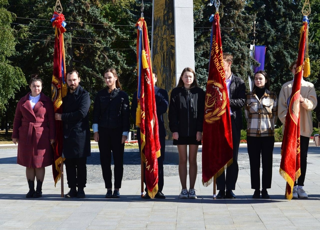 Члены молодежного совета «ИНЖЕН» с гордостью держали знамя Коломенского завода, на котором были три орденские ленты.