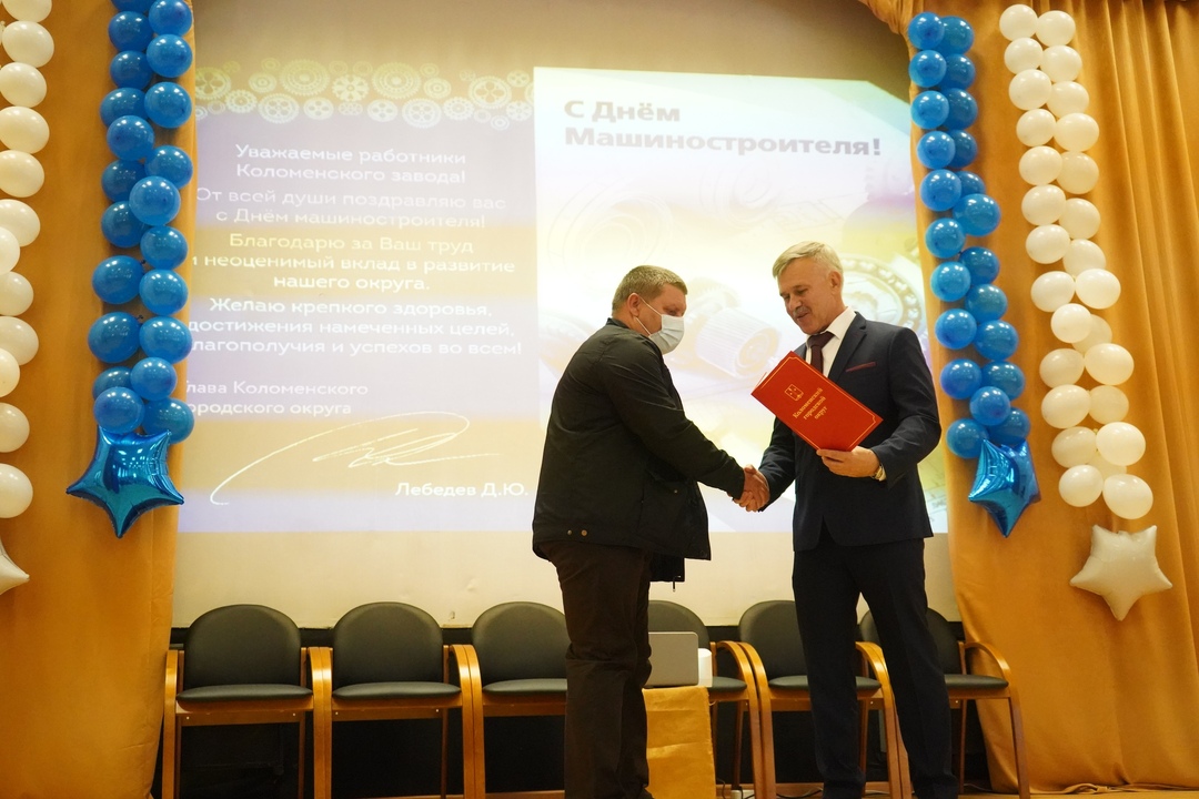 В инженерном корпусе состоялось торжественное собрание, посвященное Дню Машиностроителя. Почетные гости - руководители администрации Коломенского городского округа, Совета депутатов, Московской областной Думы, профсоюза работников промышленности. Они поздравили заводчан с профессиональным праздником, пожелали коллективу и заводу процветания и благополучия.