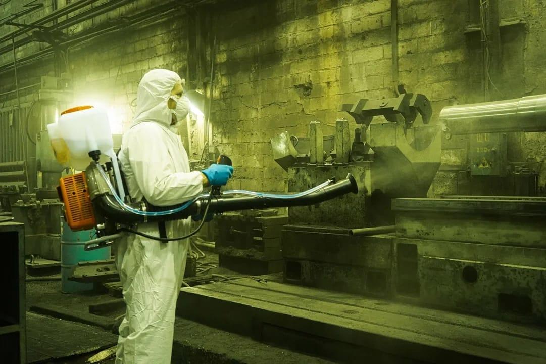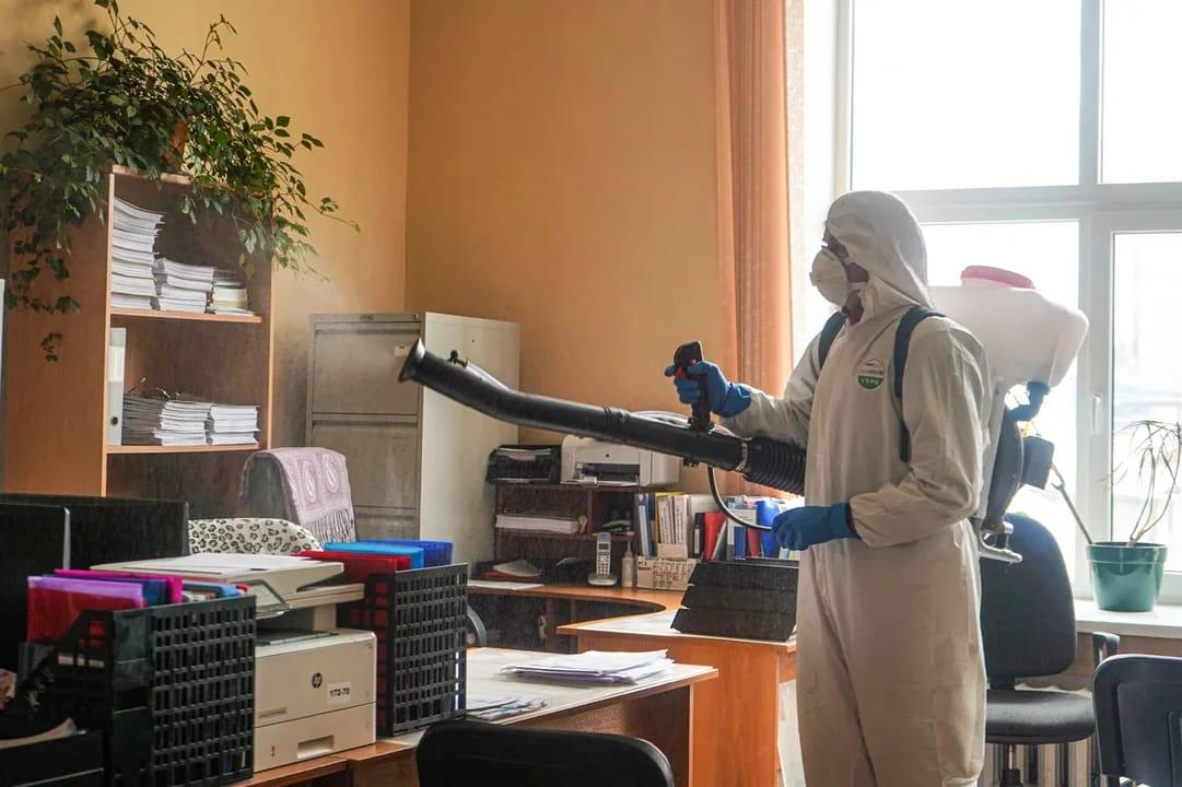 В выходные дни дезинфекция производственных и офисных помещений производится с применением специального оборудования.