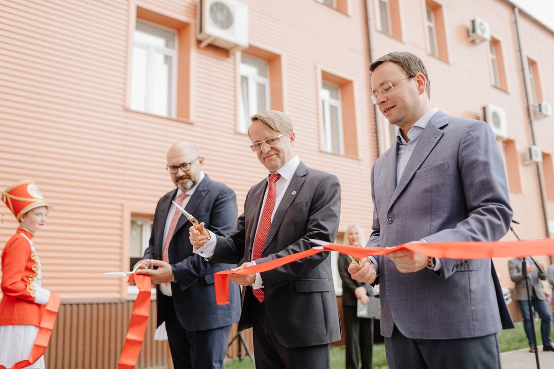 Игорь Щедров, заместитель генерального директора по операционной деятельности – член управляющей коллегии АО «Трансмашхолдинг» Андрей Васильев и вице-президент АО «Русатом Оверсиз» по развитию новых направлений бизнеса Никита Мазеин перерезали символическую красную ленту.