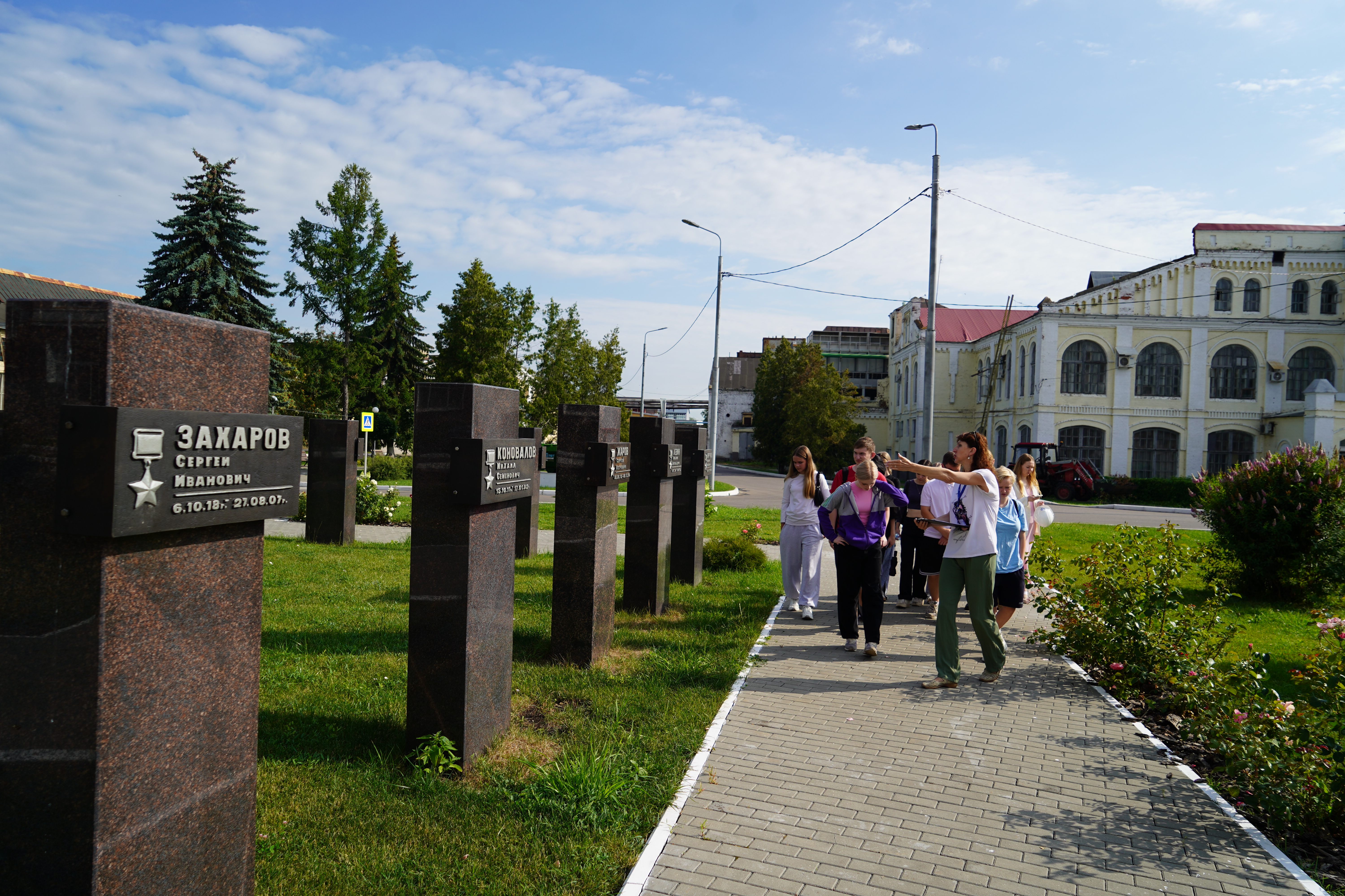 Сегодня для детей работников завода, работающих в летнем трудовом лагере на нашем предприятии, была организована экскурсия. Мы решили рассказать не только об истории и деятельности нашего завода, но и показать мемориальные места, связанные с боевыми и трудовыми подвигами заводчан.