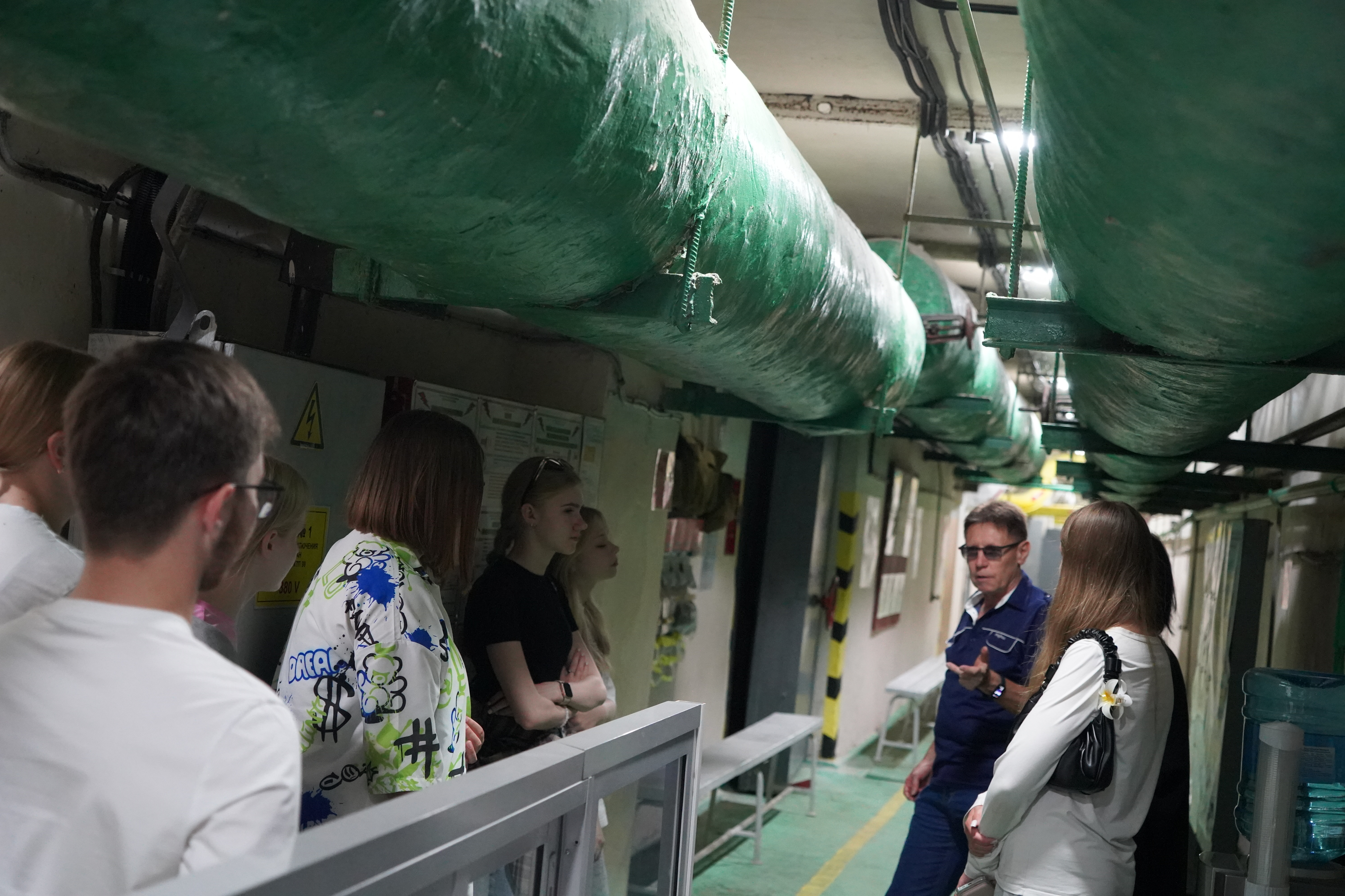 Школьники также узнали о существовании на месте инженерного корпуса Храма Всех Святых, который был разобран в 60-х годах прошлого века, побывали в защитном сооружении (бомбоубежище), увидели здания дореволюционной постройки и восхитились масштабами нашего предприятия.