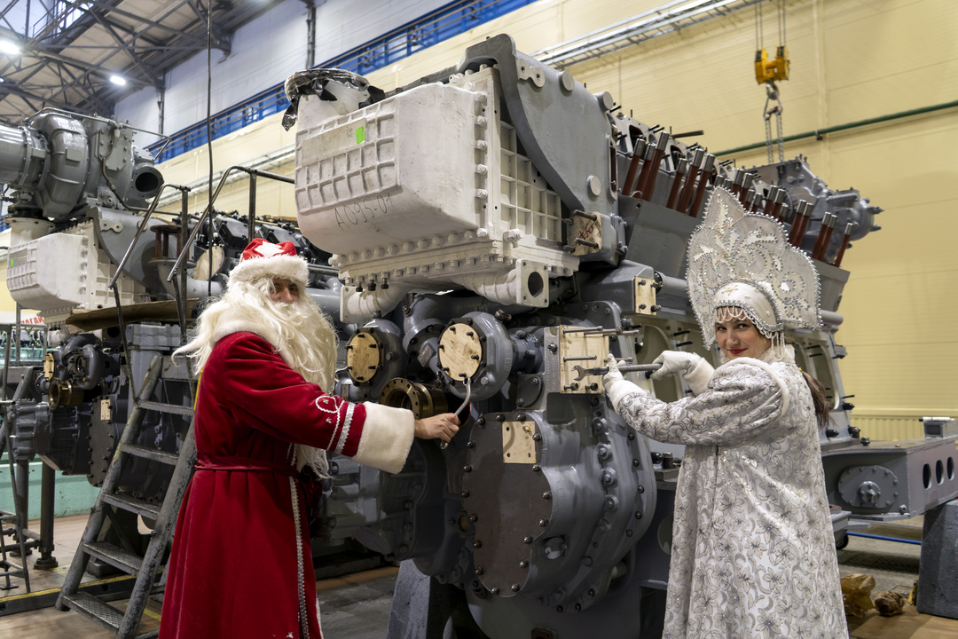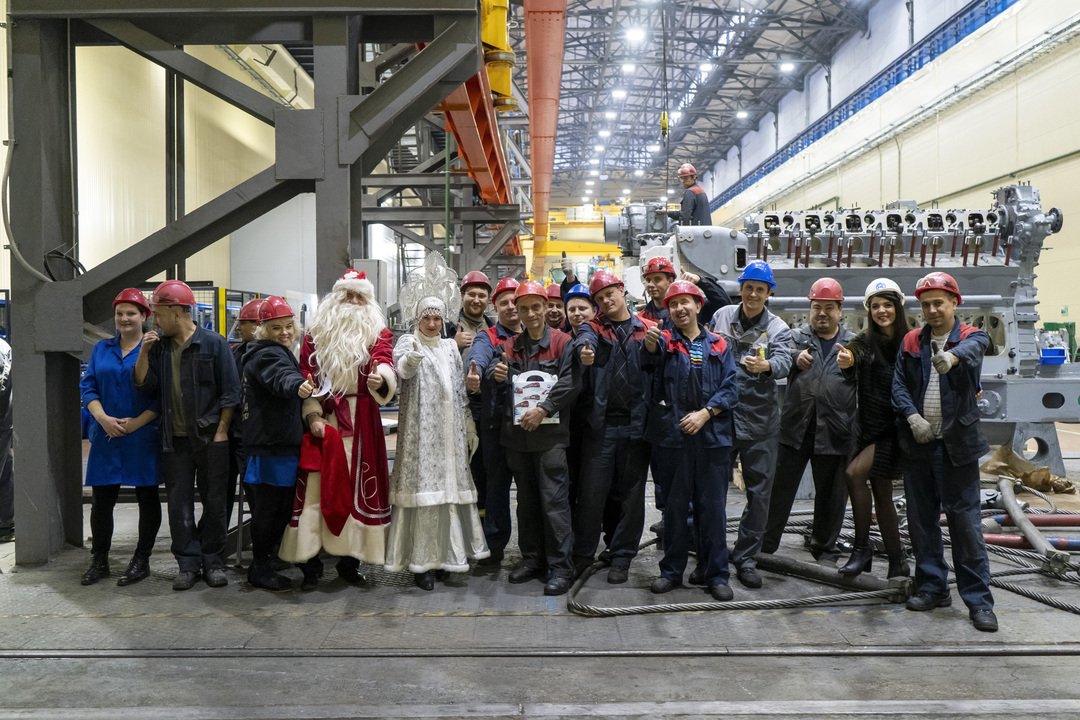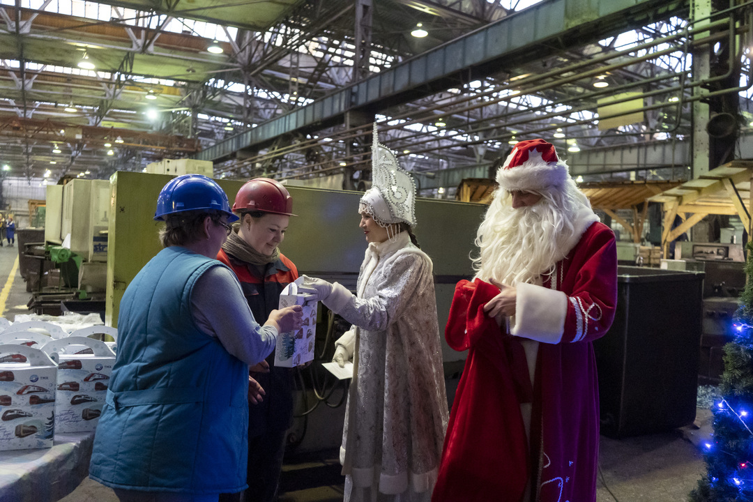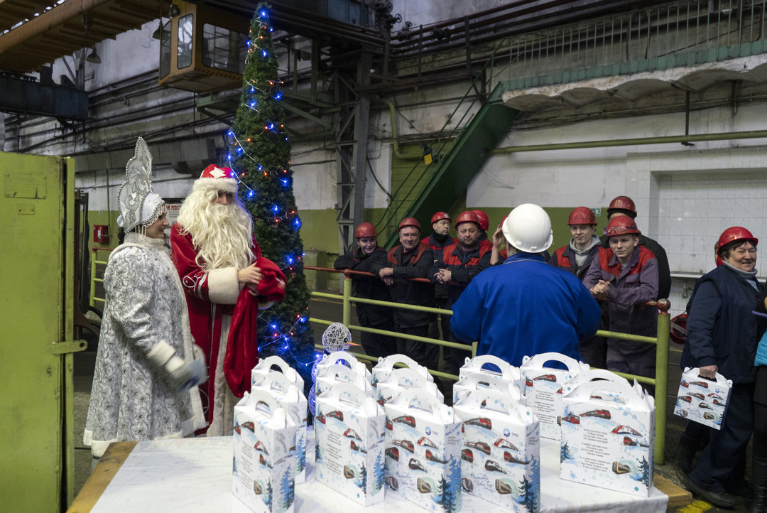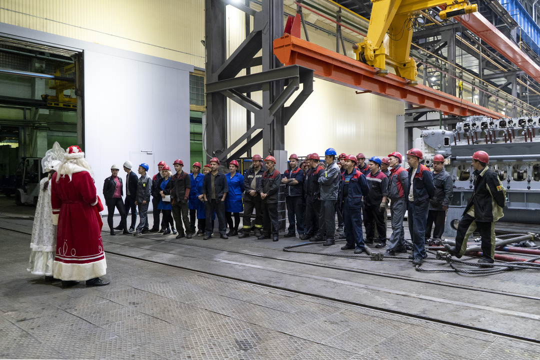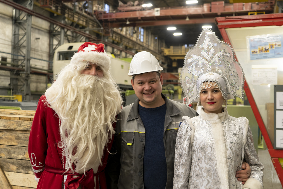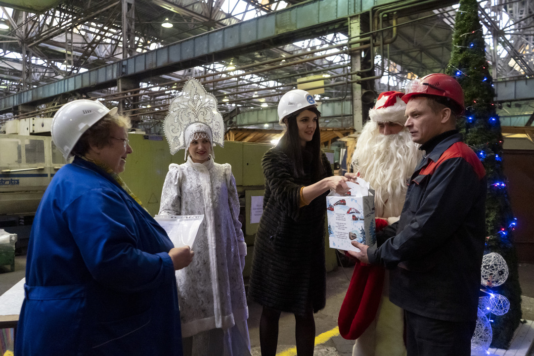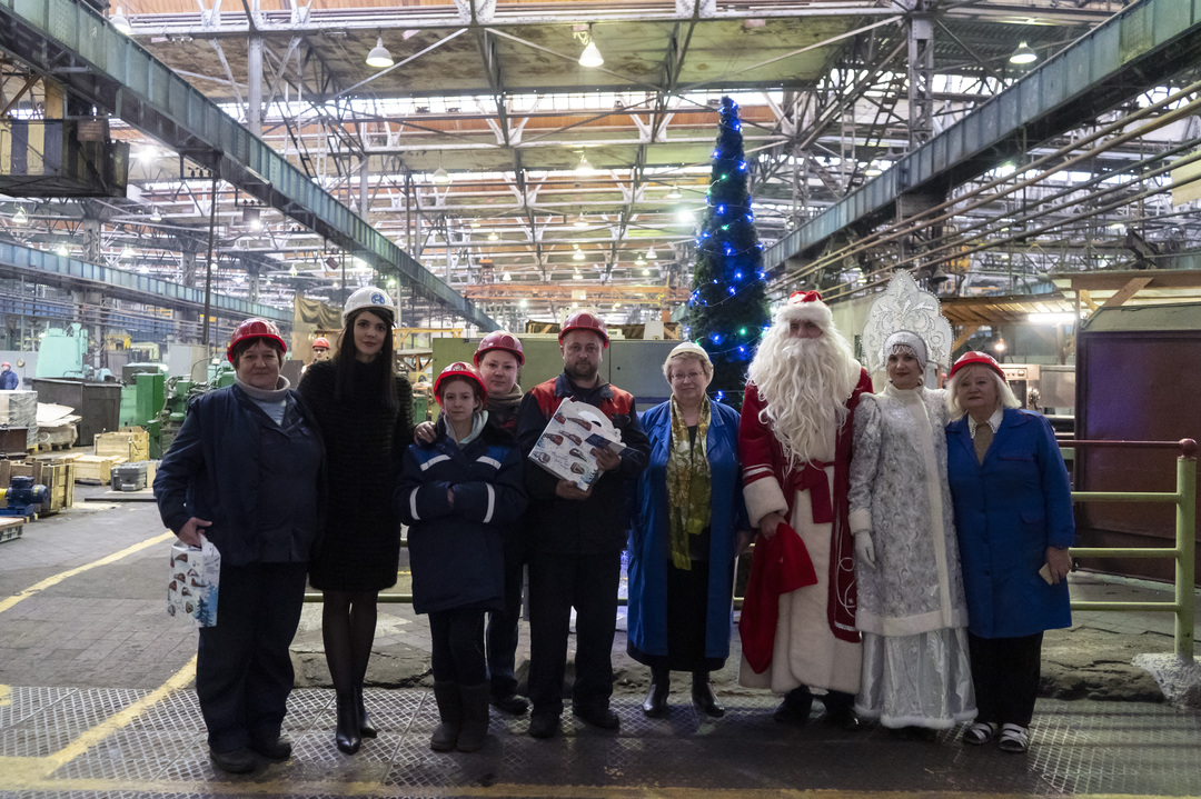 Накануне Нового года на Коломенском заводе побывали Дед Мороз и Снегурочка, которые поздравили заводчан с праздниками и вручили подарки.