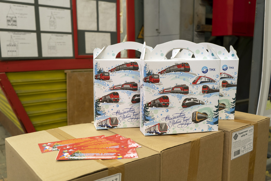 От компании "Трансмашхолдинг", в состав которого входит наше предприятие, дети коломзаводцев получили новогодние "чемоданчики", наполненные не только вкусными конфетами, но и пазлами, из которых можно собрать зимнюю картинку продукции ТМХ: тверской электропоезд "Иволга" и двухэтажные пассажирские вагоны, рельсовый автобус и метропоезд от Метровогонмаша, брянский 2ТЭ25КМ, новочеркасский ЭП20...
