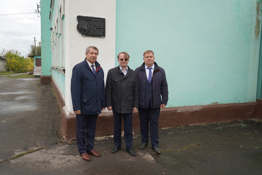Мемориальную доску на гостинице завода открыли генеральный директор предприятия Игорь Щедров и председатель Вяземского районного совета депутатов Валерий Никулин.