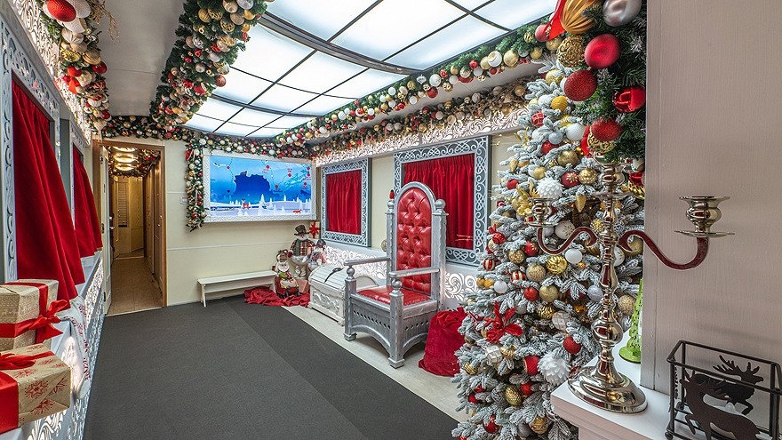 Поезд деда Мороза - празднично оформленная передвижная резиденция новогоднего волшебника, в составе которой: приемная, вагон для проведения игр и квестов, два вагона-ресторана, фотокупе, и вагон-лавка, а также новинка этого сезона - вагон кукольный театр в котором будут проходить 45-минутные представления с кукольными сказочными героями.