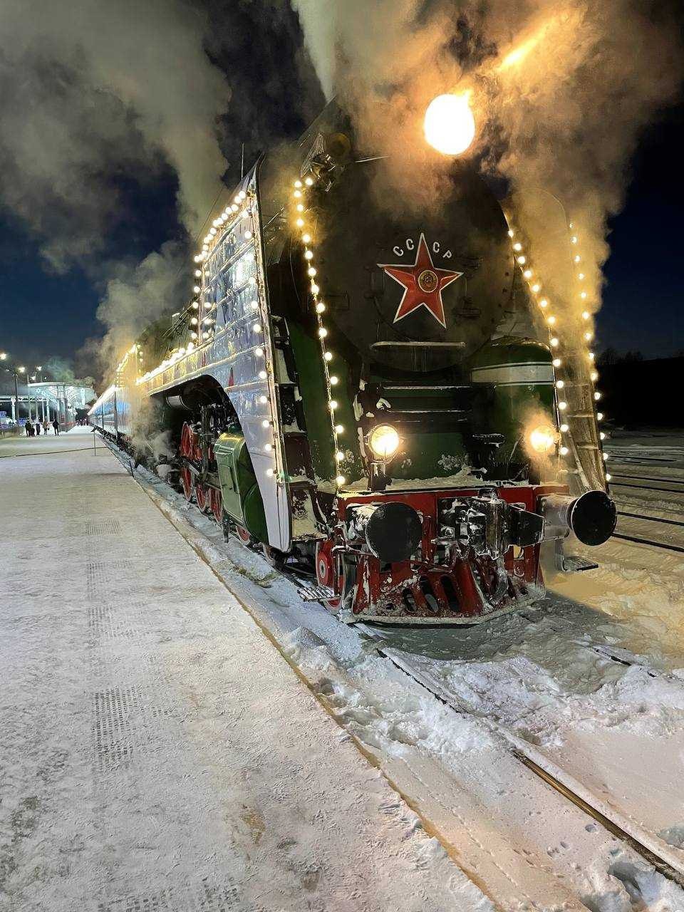 Коломзаводской паровоз серии П36 ведет знаменитый Поезд Деда Мороза.
