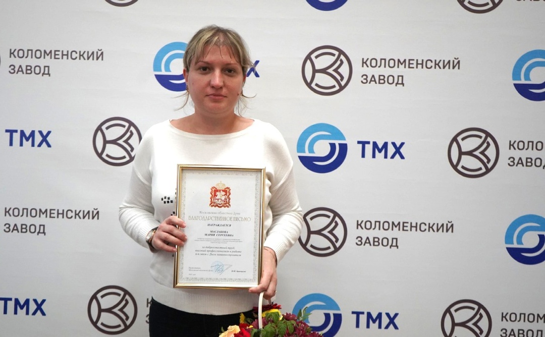 Также труд коломзаводцев был отмечен Благодарностью и Почетными грамотами РЖД, Благодарственными письмами Московской областной Думы, Почетными грамотами главы г.о. Коломна, Благодарностями городского Совета депутатов, Почетными грамотами и благодарностями ТМХ и РОСПРОФПРОМа.