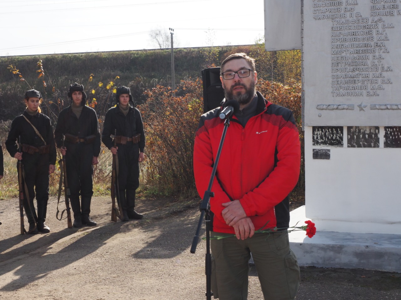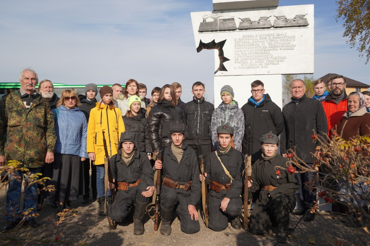 Почтить память погибших бойцов у стелы собрались гагаринцы и коломенцы: представители администрации, студенты, учащиеся коломенской гимназии № 8, где действует музей, посвященный истории особого бронепоезда № 1, поисковики, родственники бойцов, бывшие комсомольцы, благодаря которым была установлена памятная стела и другие неравнодушные люди, причастные к архивной и поисковой работе при установлении обстоятельств гибели и увековечении памяти павших воинов.