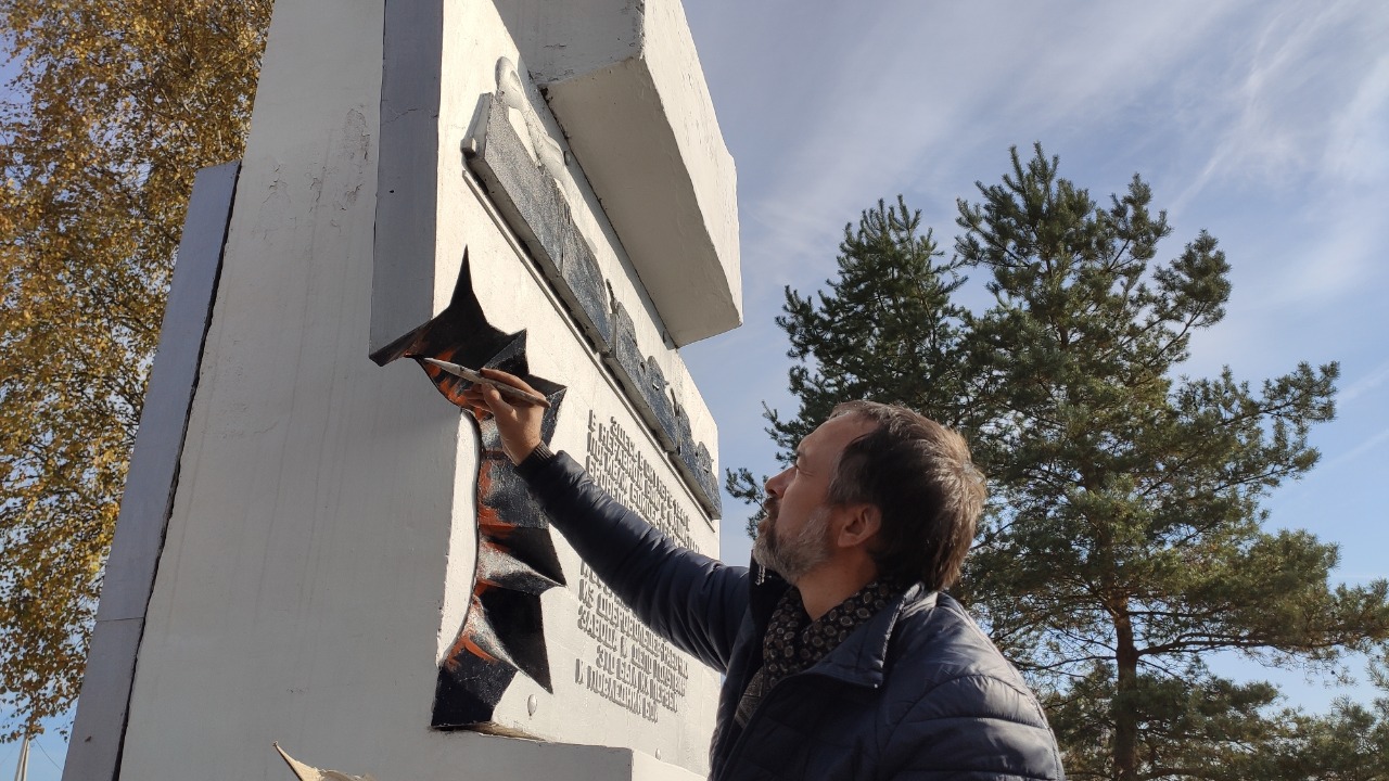 К памятному дню члены поискового отряда "Суворов" привели памятник в порядок, обновили надписи, закрепили кадры фотохроники бронепоезда.