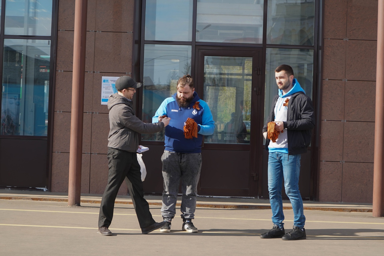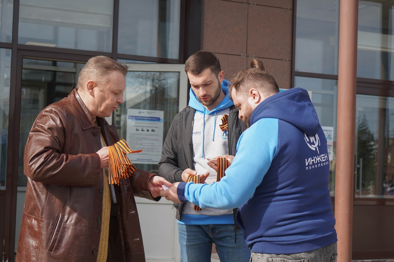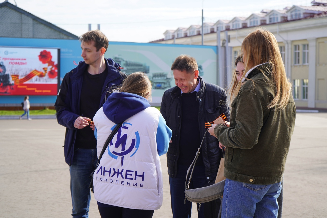 Сегодня перед началом торжественного памятного митинга, посвящённого 77-летней годовщине Победы в Великой Отечественной войне, представители молодежного движения «Инжен» Коломенского завода раздавали всем работникам предприятия Георгиевские ленточки.