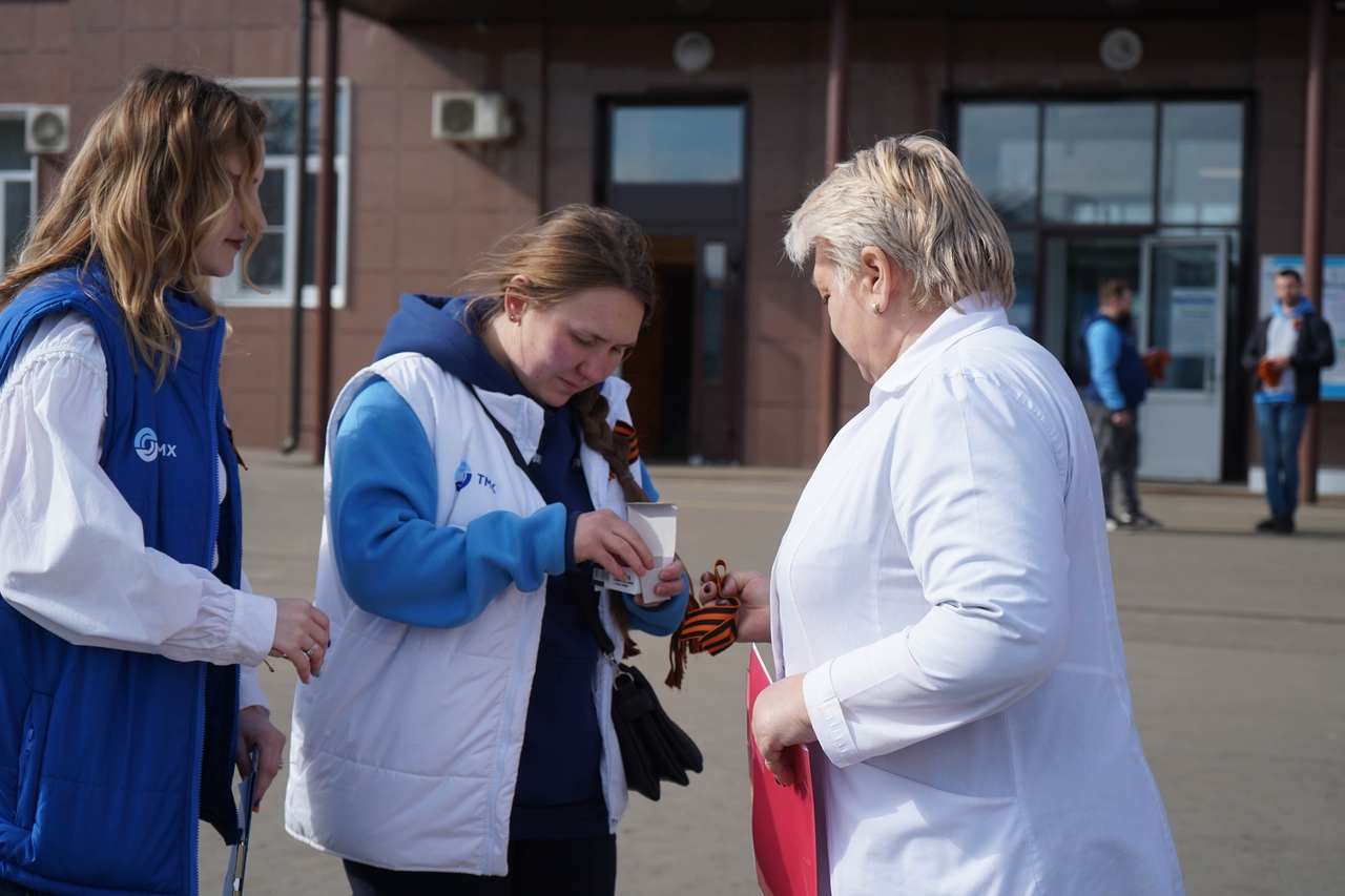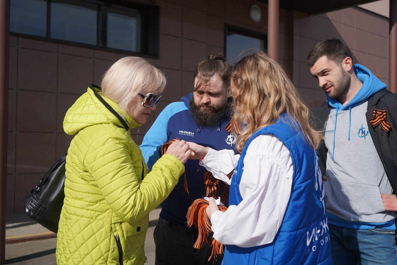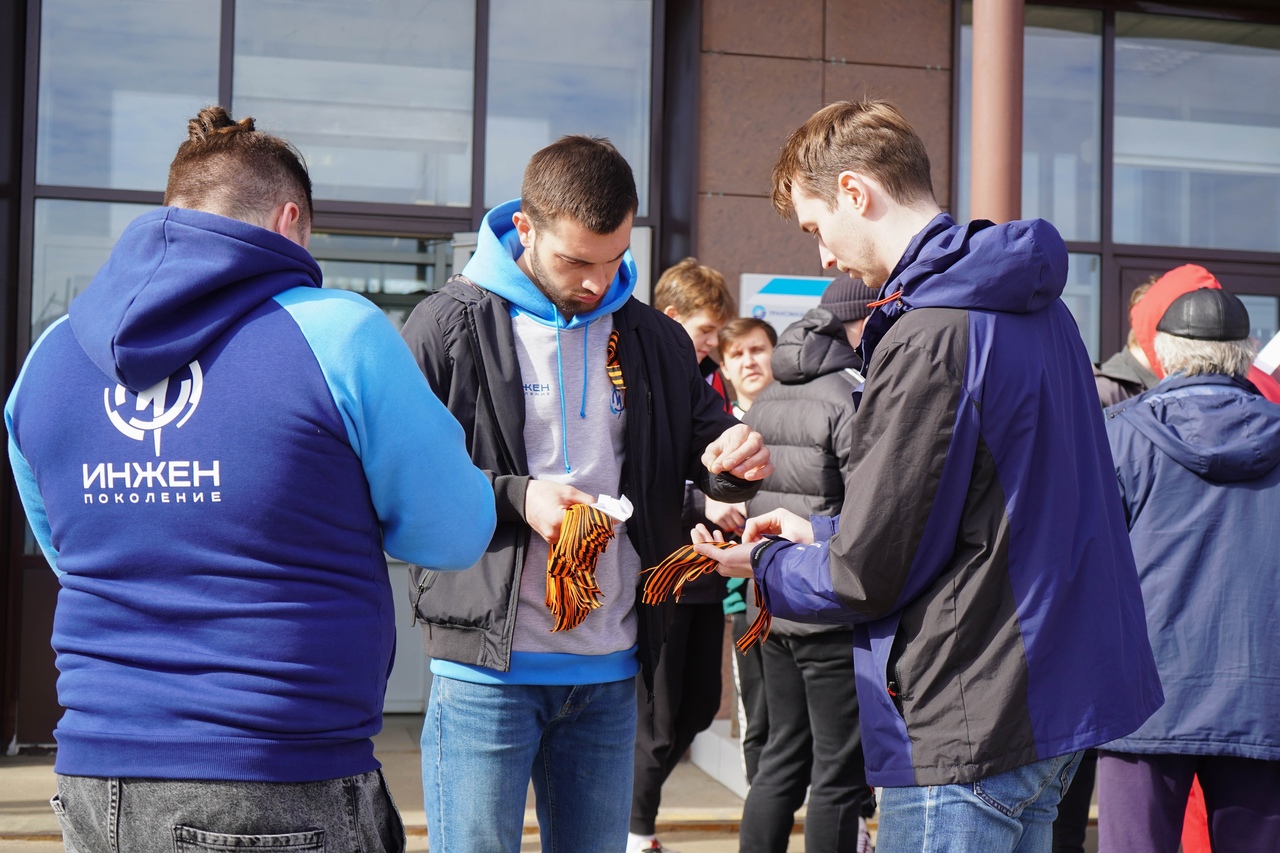 Сегодня перед началом торжественного памятного митинга, посвящённого 77-летней годовщине Победы в Великой Отечественной войне, представители молодежного движения «Инжен» Коломенского завода раздавали всем работникам предприятия Георгиевские ленточки.