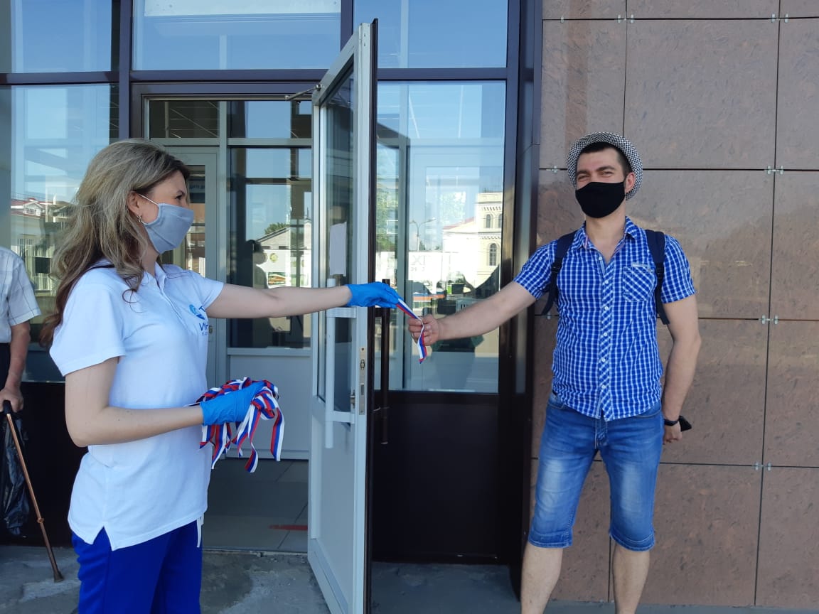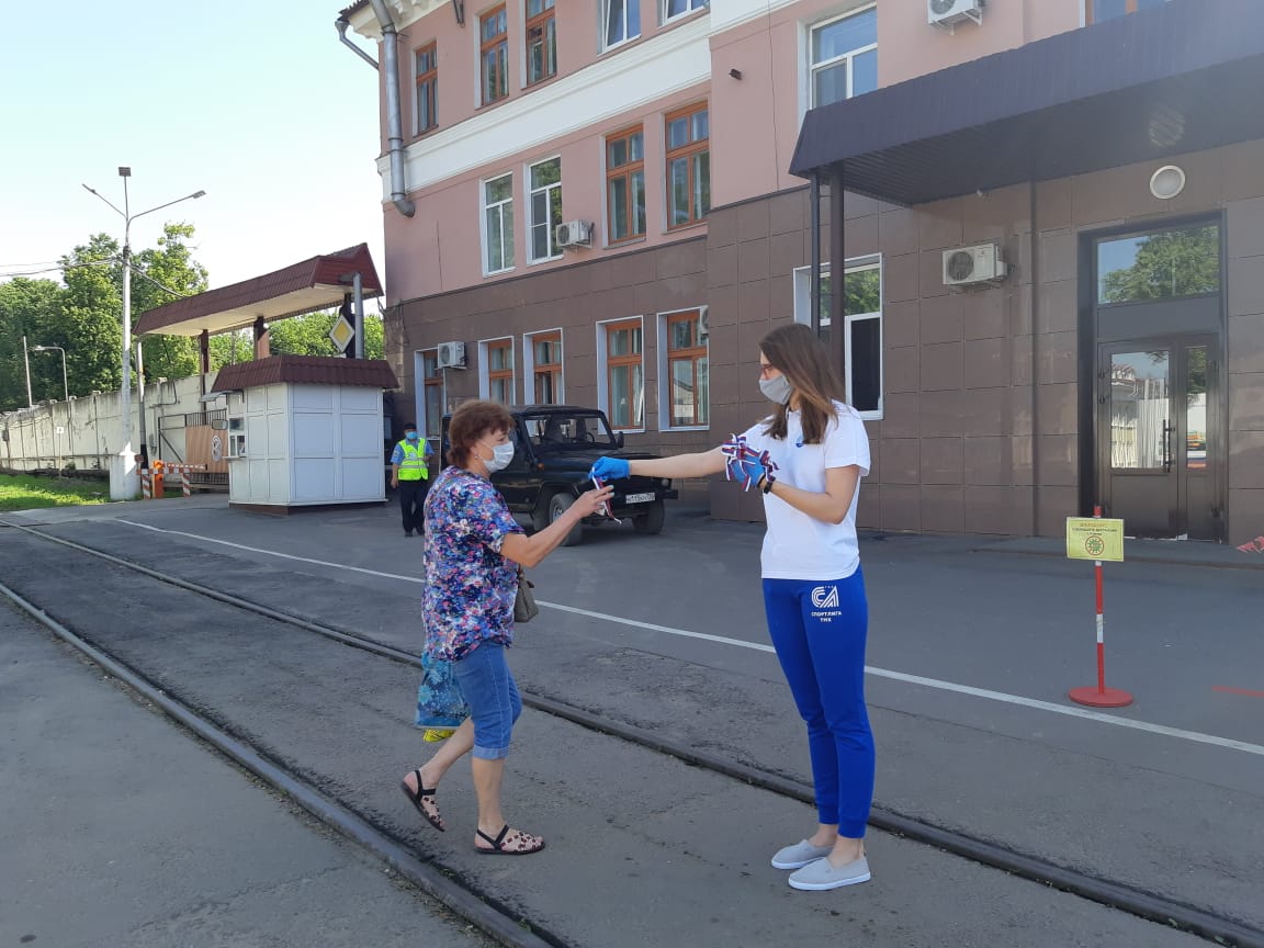 Инициативная группа заводчан совместно с представителями Молодой гвардии Коломны и члены Молодежного совета предприятия раздали на территории Коломенского завода ленты триколор.