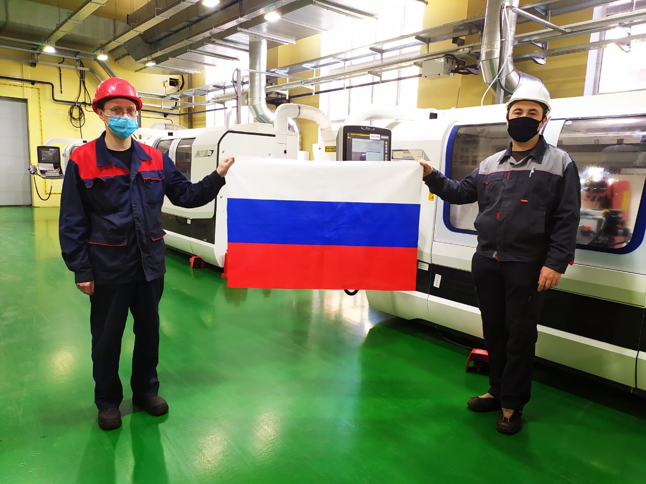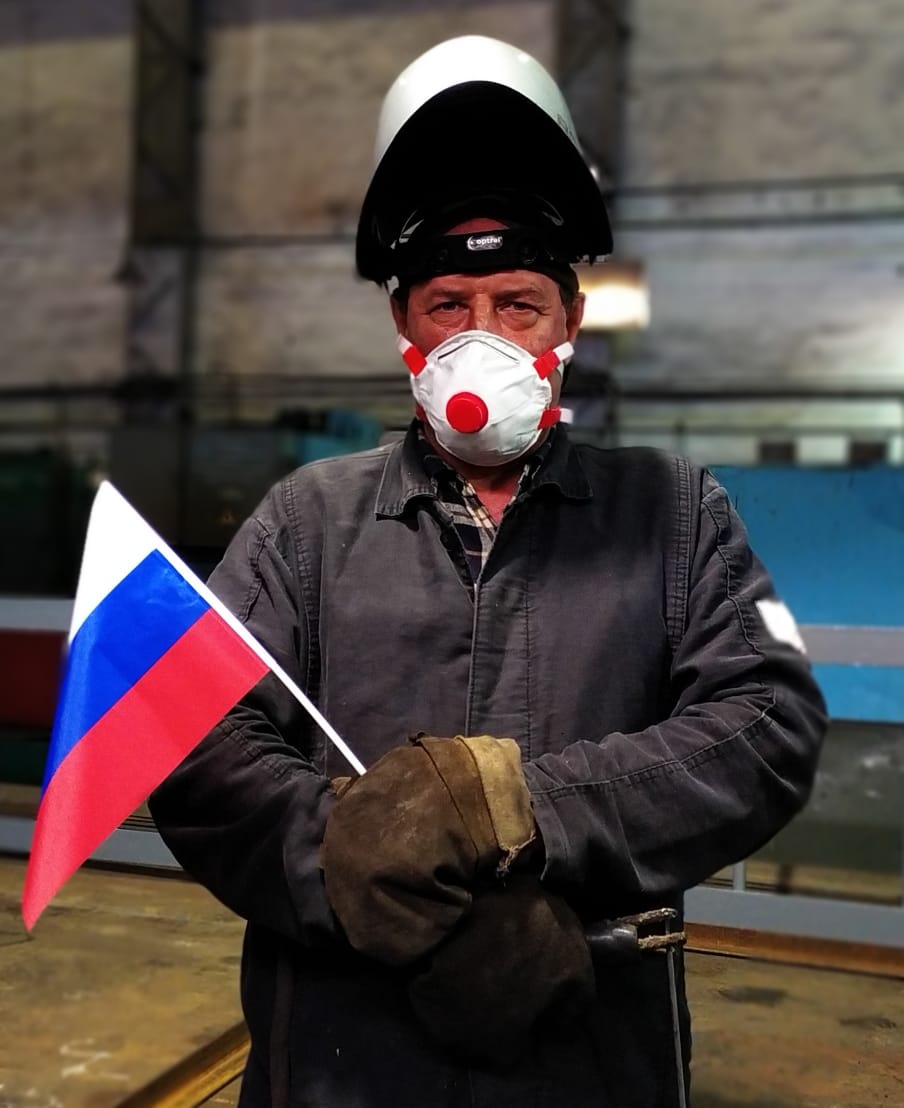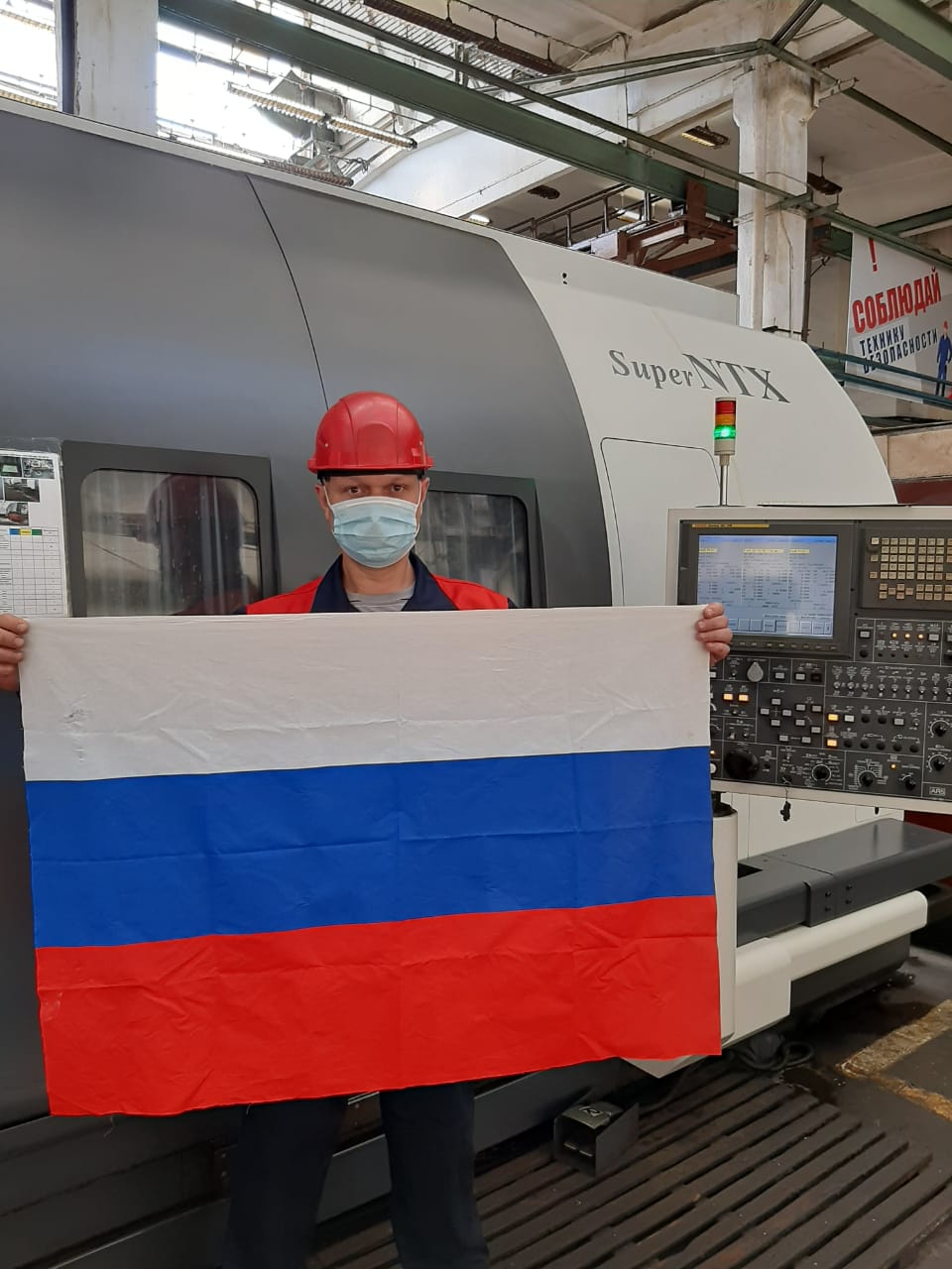 Всю предпраздничную неделю работники различных профессий фотографировались на своих рабочих местах с флагами России.