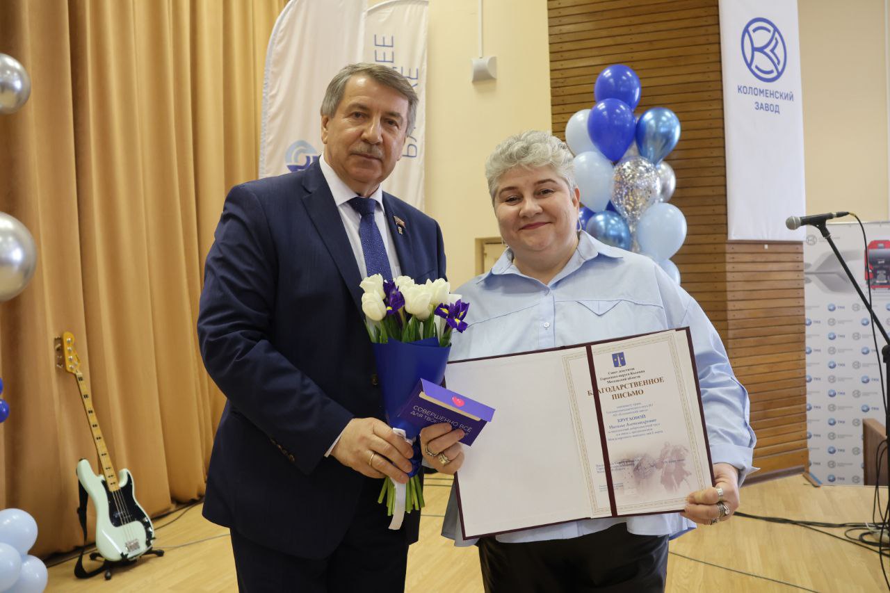 А председатель Совета депутатов Городского округа Коломна Николай Братушков преподнес заводчанам необычный подарок – песню в своем исполнении.