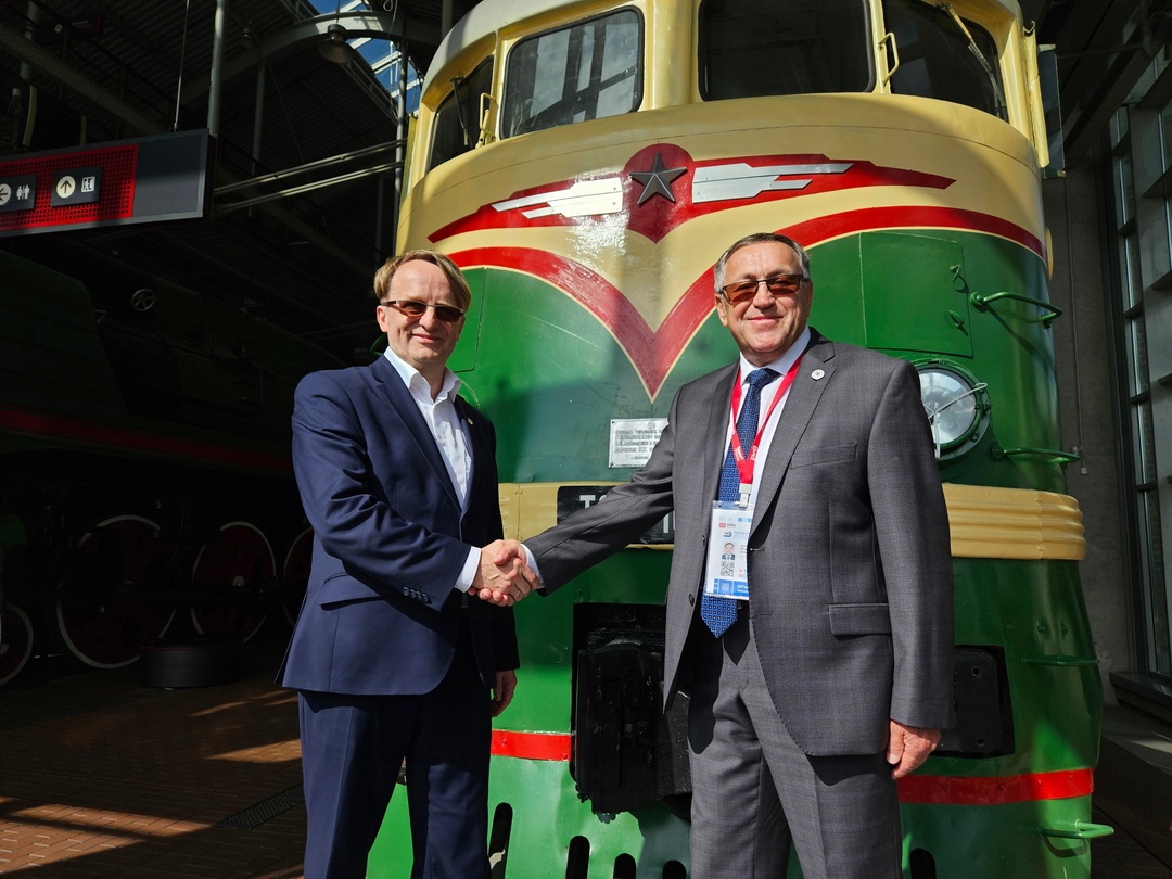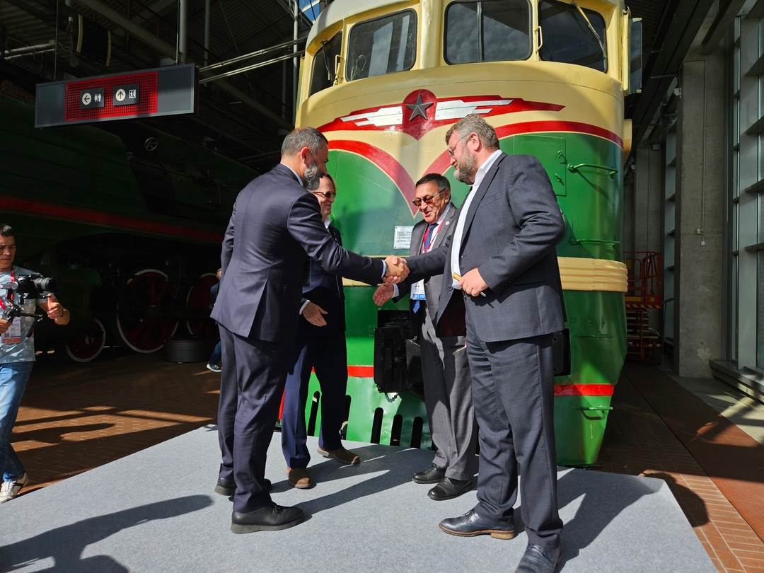 24 августа в рамках Международного железнодорожного салона пространства 1520 «PRO//ДВИЖЕНИЕ.ЭКСПО» состоялась торжественная церемонии размещения памятной таблички на первый тепловоз Коломенского завода ТЭ3 №1001, который является экспонатом Музея железных дорог России.
