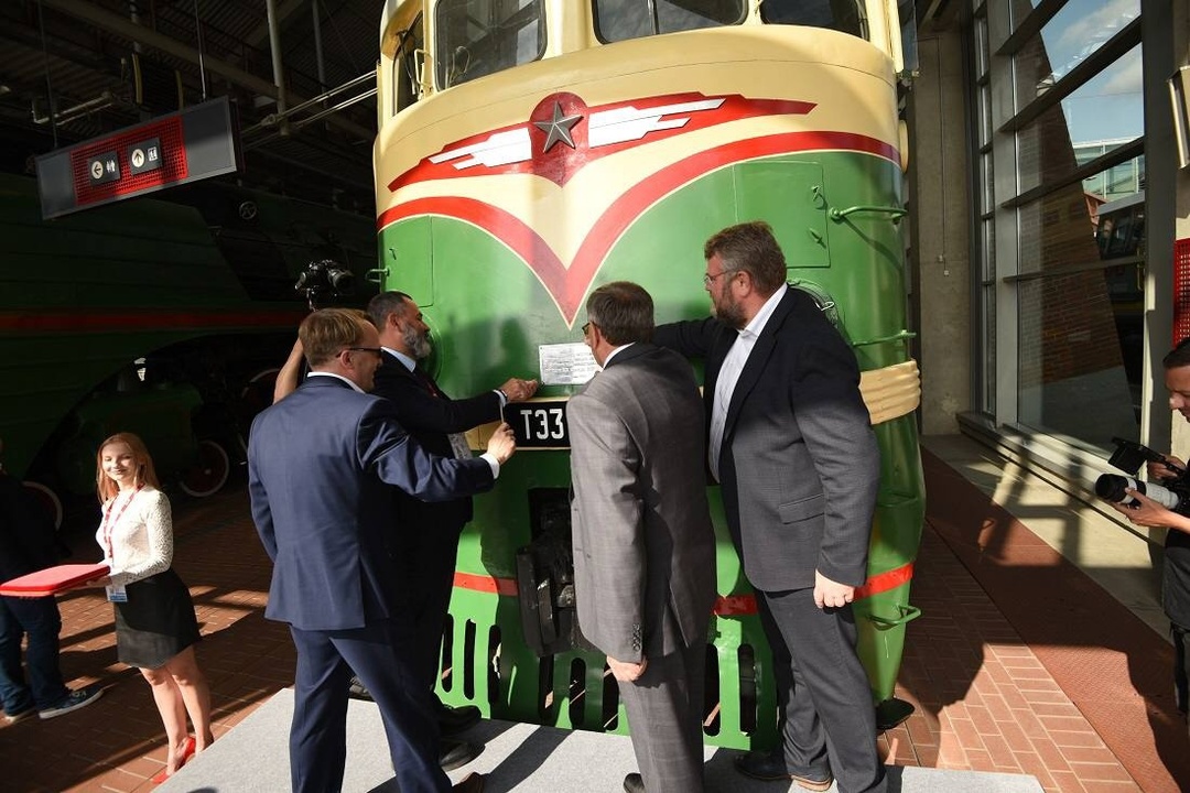 В церемонии её передачи приняли участие начальник департамента корпоративных коммуникаций РЖД Максим Лунев, генеральный директор Коломенского завода Игорь Щедров, директор музея Владимир Одинцов и директор по внешним связям ТМХ Федор Дытынко.