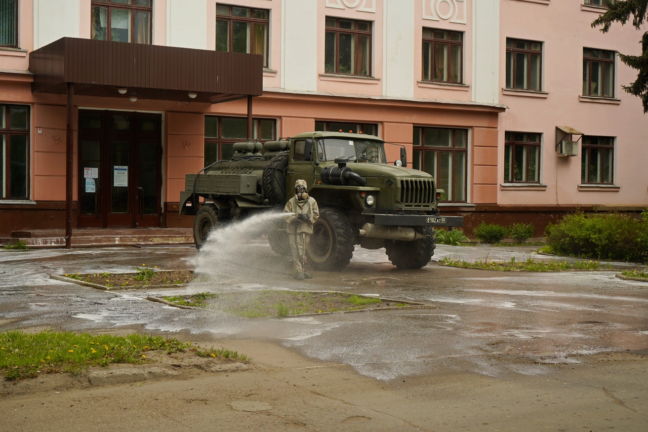 Для предупреждения распространения вирусных инфекций они провели обеззараживание более 15000 квадратных метров территории, помещений, подъездных путей и дорог с твердым покрытием.