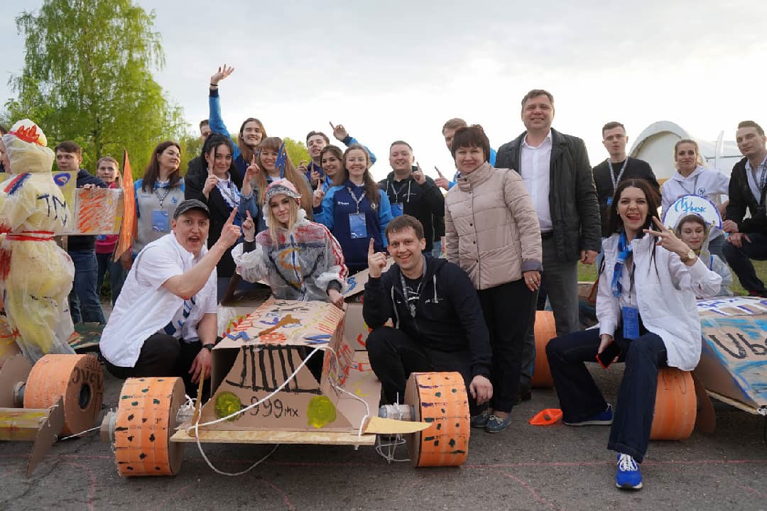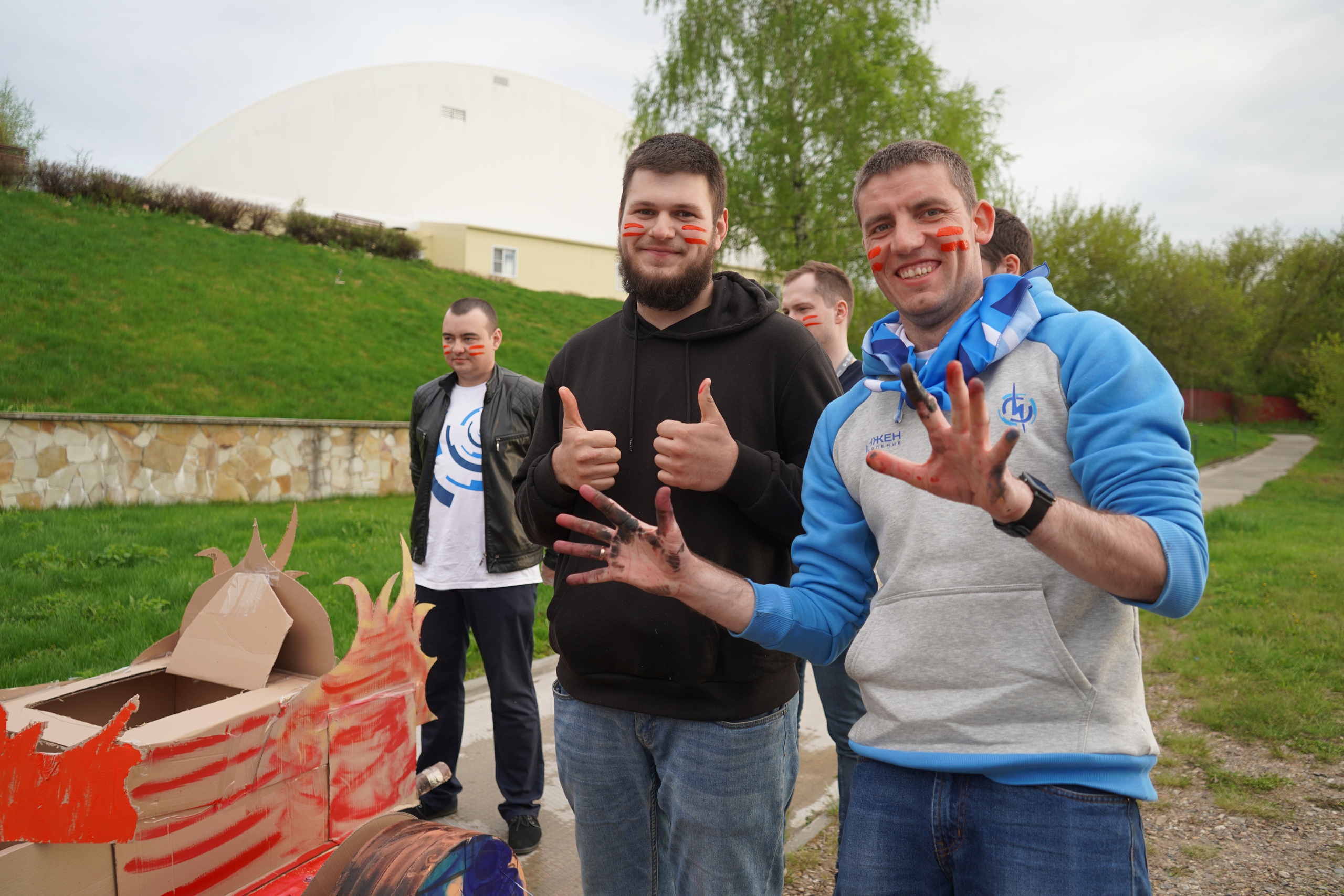 Финалом вечера стала командообразующая игра: разделившись на команды, инжены создавали из картона и подручных средств свою идеальную, уникальную "Машину будущего", а после презентовали и защищали разработанные проекты. Тематика этого непростого задания была выбрана не случайно - слоган "Создай машину будущего" стал основным девизом Слета.