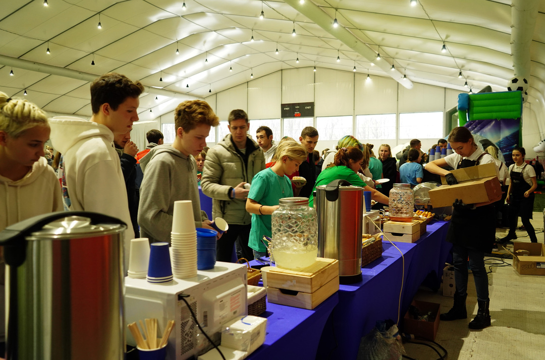 В заключительный день соревнований поддержать команды своих предприятий приехали болельщики: коллеги, друзья, семьи с детьми. Для них, кроме просмотра финальных матчей под комментарии знаменитого Виктора Гусева, была организована интерактивная программа.