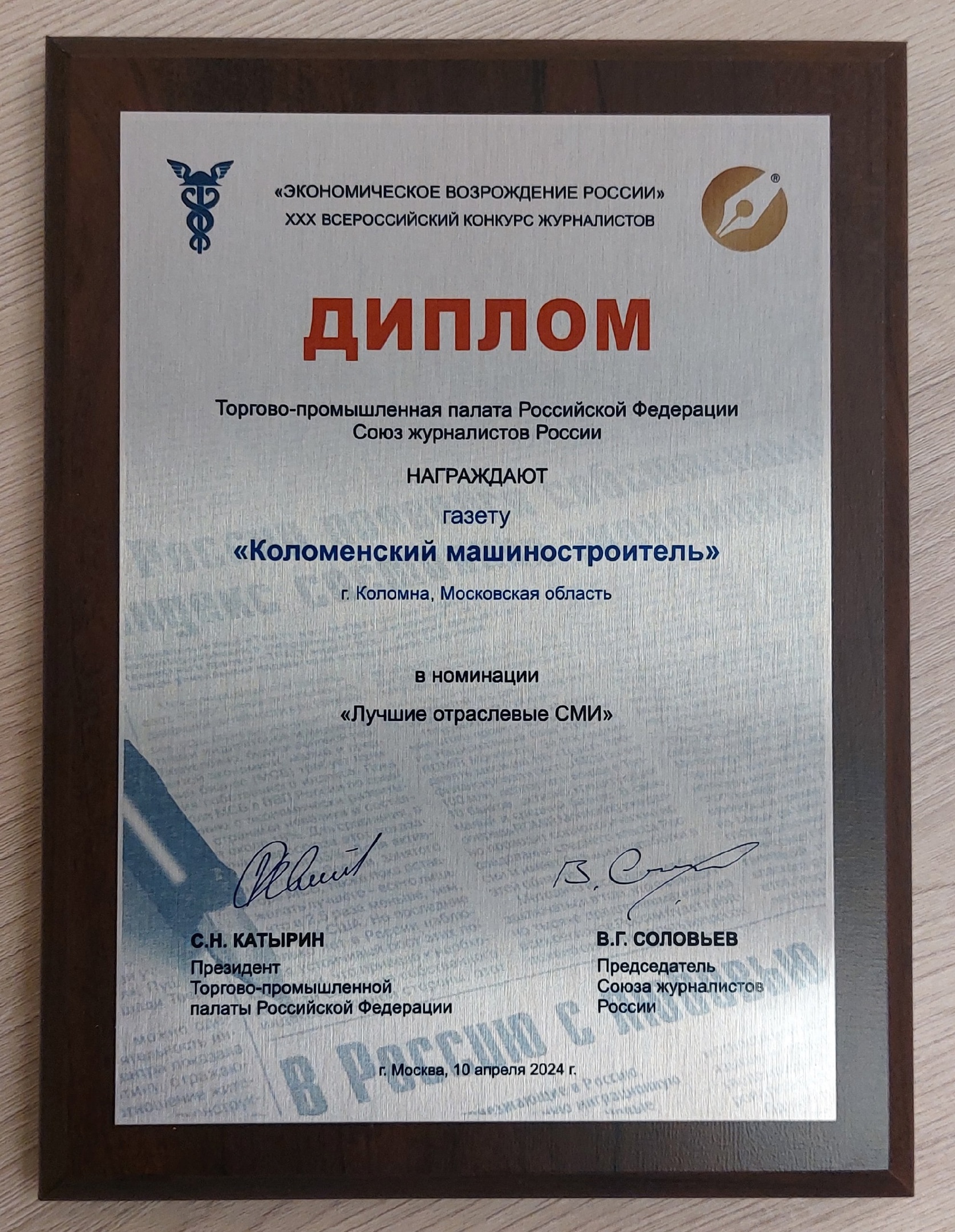 Корпоративная газета Коломенского завода «Коломенский машиностроитель» стала победителем юбилейного XXX Всероссийского конкурса журналистов «Экономическое возрождение России» по итогам 2023 года в номинации «Лучшие отраслевые СМИ».