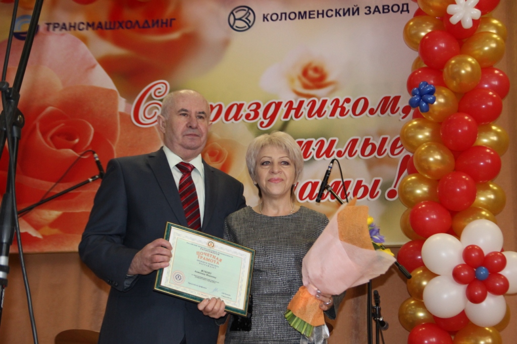 Мужчины вручили работницам Коломенского завода городские, областные и профсоюзные награды и много, много цветов.