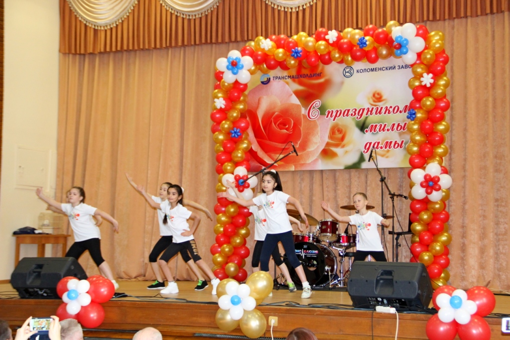 Еще более праздничную атмосферу заводскому мероприятию, посвященному 8 марта, привнесли выступления вокального коллектива "Дэнс Клюзив" и юных воспитанников Школы танцев Dance Kitchen.