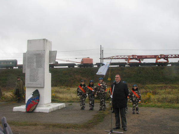 Делегация Коломенского завода приняла участие в митинге, посвященном памяти Особого бронепоезда № 1 «За Сталина!», сконструированного и построенного на Коломенском заводе 11 октября 2011 года в городе Гагарин (бывший Гжатск) Смоленской области состоялся митинг, посвященный 70-летию со времени гибели Особого бронепоезда № 1 «За Сталина!». 11 октября 2011 года в городе Гагарин (бывший Гжатск) Смоленской области состоялся митинг, посвященный 70-летию со времени гибели Особого бронепоезда № 1 «За Сталина!». Центральным моментом мероприятия стало размещение на мемориал изготовленной работниками Коломенского завода памятной таблички с именем бойца бронепоезда — С.А. Виноградова. Среди участников мероприятия присутствовали заместитель главы г. Коломны Е.В. Козлов, представитель отдела культуры Гагаринского района О.В. Брехова, родные погибших бойцов бронепоезда — дочь и внучка Германа Ивановича Иванова с зятем, сын Павла Алексеевича Иванова с супругой, внуки Владимира Георгиевича Каранникова; делегация Коломенского завода в составе кровельщиков ОЭРЗиС Сергея Ленюхина, Евгения Шукаева и бетонщицы ОЭРЗиС Натальи Корнеевой; специалиста по кадрам ОРПП Сабиры Ереминой, кладовщика цеха М-9 Алены Терехиной, мастера ЛС цеха Юнира Азизова, экономиста ПЭУ Натальи Печеникиной; представители поисковых отрядов и клубов исторической реконструкции — «Русь», «Княжий стяг», «Суворов». В числе организаторов митинга была также исследователь и специалист в вопросах истории бронепоезда, учитель русского языка и литературы гимназии № 8 г. Коломны Л.А. Немцева вместе со своими учениками. Упорная многолетняя исследовательская работа Л.А. Немцевой — и в качестве руководителя отряда «Дон-Кихоты», и в нынешней должности — позволила обнаружить не одно имя пропавших без вести бойцов бронепоезда. И одна из последних находок — имя бойца Особого бронепоезда № 1 «За Сталина!» С.А. Виноградова, установленное в прошлом году. Участники митинга отметили особое трепетное отношение современников к тому трагическому и героическому бою бронепоезда, а также подчеркнули его роль в исходе сражения. Начальник отдела культуры Гагаринского района О.В. Брехова поблагодарила коломенцев за доброе постоянное внимание, которое они оказывают мемориалу. По ее признанию, она глубоко тронута таким трепетным отношением жителей Коломны к памяти земляков. Заместитель главы г. Коломны Е.В. Козлов в своем выступлении подчеркнул: «Наш коломенский бронепоезд внес свою неоценимую лепту в будущую победу: он задержал движение вражеских колонн к Москве всего, может быть, на несколько часов, но в те дни каждая минута решала многое». В знак памяти обо всех бойцах бронепоезда прозвучали залпы армейского оружия, к памятнику были возложены живые цветы и венки.