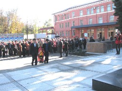 День памяти Особого бронепоезда № 1 «За Сталина» 8 октября в ОАО «Коломенский завод» состоялся День памяти Особого бронепоезда № 1 «За Сталина». 8 октября в ОАО «Коломенский завод» состоялся День памяти Особого бронепоезда № 1 «За Сталина». Почтить память павших собрались заводчане, ветераны, родственники погибших, учащиеся ПУ-6, ученики школы № 8, студенты коломенского политехнического колледжа. После экскурсии по заводскому музею, посвященной вкладу коломзаводцев в дело Победы советского народа в Великой Отечественной войне 1941-1945 гг., в актовом зале Центра развития персонала учитель русского языка и литературы школы № 8 и руководитель поискового отряда Дон-Кихоты, автор книги «Судьба бронепоезда № 1 героическая и трагическая, Лилия Анатольевна Немцева рассказала собравшимся историю постройки и гибели бронепоезда. Построенный на Коломенском заводе в 1941 году, в рекордно короткий срок – всего за 25 дней! – бронепоезд № 1, команда для которого была сформирована из работников Коломенского завода и станции Голутвин, принял свой первый и последний бой 10 октября 1941 года на Смоленщине, под Гжатском (ныне – г. Гагарин). Большинство членов команды бронепоезда погибли, однако он выполнил свою боевую задачу: отвлек вражеские силы на себя и, тем самым, дал шанс на спасение сотням бойцов Красной Армии, выходившим из окружения под Вязьмой. Лилия Анатольевна подчеркнула, что заводчане создали мощное и грозное оружие. И с поставленной перед ним задачей – отвлечь вражеские силы, уничтожить как можно больше немецкой техники, рвущейся к Москве, команда бронепоезда справилась отлично. Бронепоезд расстрелял колонну немецких танков на шоссе под Гжатском, часов на пять- шесть задержал продвижение техники врага к столице. В октябре 1941 года значимой была каждая выигранная минута. Бронепоезд получил в бою незначительные повреждения, отошел в тыл, но через несколько часов вновь вернулся на поле боя. Но здесь его уже ждала засада: с одной стороны железнодорожного полотна - пушки, с другой - танки. Бой бронепоезд вел около двух часов, пока не кончились снаряды. Выйти из боя удалось немногим. На экране – лица молодых людей: Герман Иванов, Павел Иванов, Александр Орлов, Елизавета Кубышкина, Серафима Петрухина, Клавдия Макарова и дургие члены команды бронепоезда, - такими они уходили на фронт, такими погибли защищая 10 октября 1941 года подступы к столице. Лилия Анатольевна рассказывает об их судьбах. У кого-то из них остались дети, и сейчас в Коломне, районе, других городах живут внуки, правнуки. В этом году правнук Павла Алексеевича Иванова побывал на месте захоронения своего прадеда. Другие погибли, не успев полюбить, создать семью, как военфельдшер Клавдия Макарова. Среди бойцов бронепоезда было много лучших работников завода – ударников и стахановцев, как Елизавета Кубышкина, одна из первых женщин на заводе награжденная орденом Ленина, среди самых первых она записалась и в команду бронепоезда, санитаркой. История создания мемориального комплекса на месте гибели бронепоезда №1 «За Сталина!», отметила Л.А. Немцева, сама по себе очень примечательна святым отношением к памяти о погибших жителей разных городов и народов. В 1966 году учащиеся школы № 26 с учителем Н.П. Гальпериной и выжившими бойцами бронепоезда побывали на месте гибели Особого № 1. Тогда вперв
