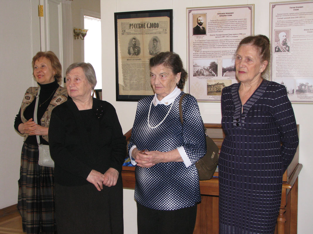 Научный сотрудник Краеведческого музея Лариса Борисовна Рябкова провела для гостей мероприятия экскурсию по новой музейной экспозиции «Коломна. Уроки демократии. Начало пути». Основная идея выставки посвящена развитию городского самоуправления Коломны, работе Городской думы, начиная с 1870 года. Представленные экспонаты, найденные сведения, факты, артефакты позволяют в полной мере оценить, насколько велик вклад гласных депутатов города в обустройство Коломны. Среди имен коломенских деятелей и меценатов значимое место заняли и те, чья история тесно переплетена с историей Коломенского завода – Аманд и Густав Егорович Струве, Александр Амандович Крюденер-Струве, Раймонд Александрович Корейво, Э.К. Гартман.