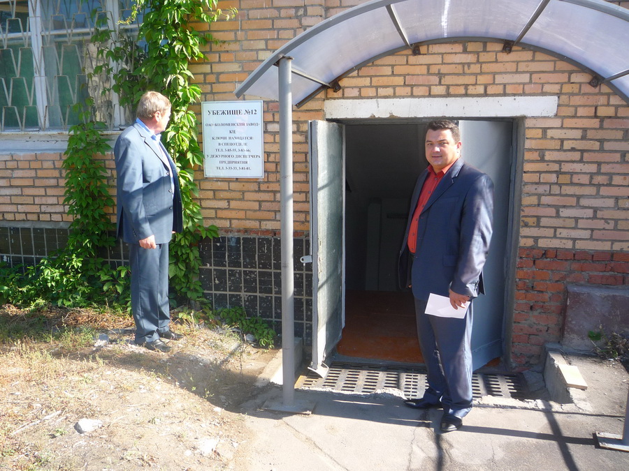 На территории Коломенского завода проверены защитные сооружения гражданской обороны В соответствии с планом комплексной проверки состояния защитных сооружений гражданской обороны 20 августа комиссией администрации городского округа Коломна проверены защитные сооружения гражданской обороны, расположенные на территории ОАО «Коломенский завод». В соответствии с планом комплексной проверки состояния защитных сооружений гражданской обороны 20 августа комиссией администрации городского округа Коломна проверены защитные сооружения гражданской обороны, расположенные на территории ОАО «Коломенский завод». Разработан план проведения показного занятия на базе предприятия для уполномоченных на решение задач в области гражданской обороны, защиты населения и территорий от чрезвычайных ситуаций природного и техногенного характера предприятий и учреждений города.
