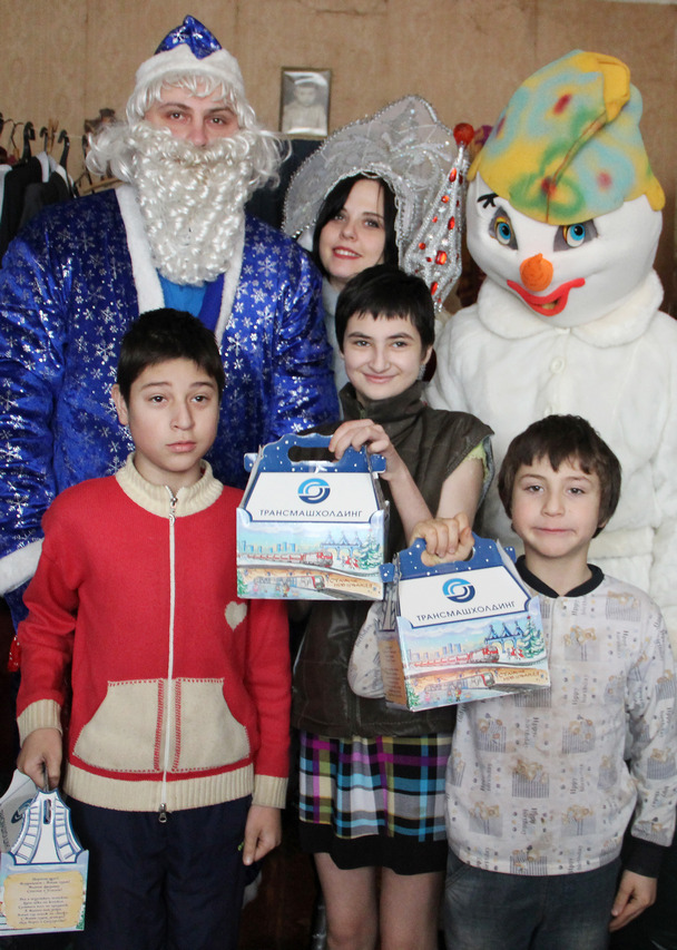 Всем детям были вручены сладкие новогодние подарки от ОАО "Коломенский завод" и ЗАО "Трансмашхолдинг" .