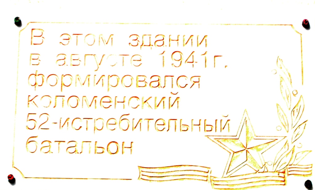 Открытие мемориальной доски 52-го Коломенского истребительного батальона НКВД 28 апреля 2015 года, в Коломне на одном из зданий МБОУ СОШ № 21, состоялось торжественное открытие мемориальной доски, посвященной памяти бойцов 52-го Коломенского истребительного батальона НКВД. 28 апреля 2015 года, в Коломне на одном из зданий МБОУ СОШ № 21, состоялось торжественное открытие мемориальной доски, посвященной памяти бойцов 52-го Коломенского истребительного батальона НКВД. Осенью 1941 года, когда нависла угроза захвата Москвы, а многие города Подмосковья уже пали, повсеместно стали создаваться истребительные батальоны. В эти дни был сформирован и 52-й Коломенский истребительный батальон НКВД. Военная подготовка его бойцов проходила как раз на том месте, где теперь расположено одно из зданий МБОУ СОШ № 21. Основную часть бойцов 52-го батальона составляли работники Коломенского машиностроительного завода. В торжественном митинге приняли участие ветераны Великой Отечественной войны, члены Общественной палаты г.о. Коломна, представители предприятий, учебных и молодежных организаций города, телевидение. Почетными гостями стали начальник отдела организационно-методического обеспечения администрации г.о. Коломна Вячеслав Федорович Юрченко, член общественной палаты г.о. Коломна Сергей Викторович Шуваликов, Галина Александровна Ерохина — дочь участницы боевых операций 52-го Коломенского истребительного батальона Серафимы Михайловны Ерохиной. Ученики МБОУ СОШ № 21 выстроились с портретами своих родных — участников войны. Они и другие, выступившие на митинге, рассказали о боевой судьбе батальона, который выполнял ответственные задания в тылу врага, о его командирах и бойцах, оставивших нам своими смелостью и отвагой примеры беззаветного служения делу защиты Отечества. Право открыть мемориальную доску было предоставлено ученику 8 класса МБОУ СОШ № 21 Даниле Новикову — победителю акции по сбору макулатуры «Дело хоть и бумажное, но очень важное!». Собравшиеся почтили память павших бойцов батальона и всех участников войны, не доживших до сегодняшнего дня, минутой молчания, возложили цветы к мемориальной доске.