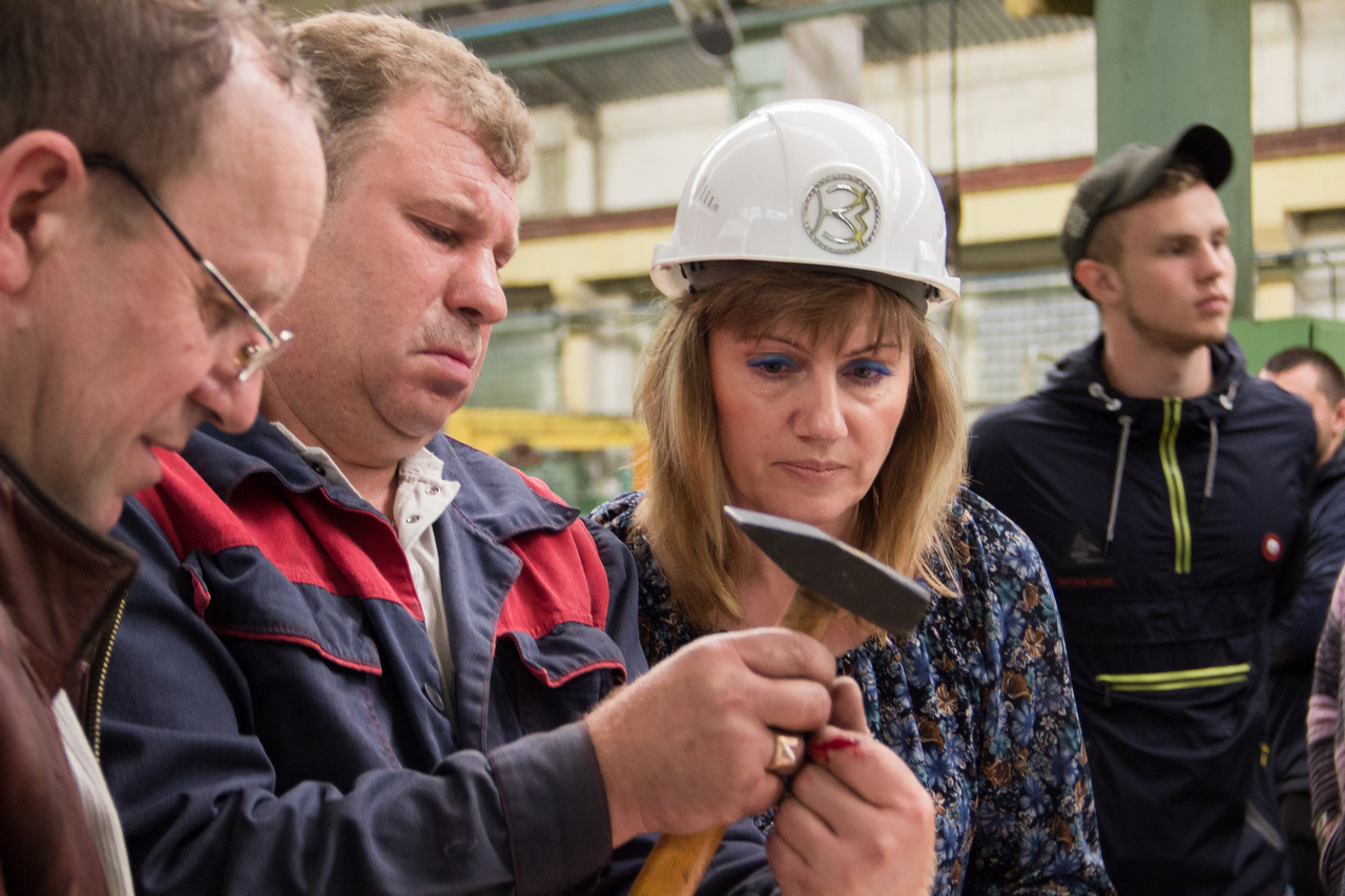 Практическое задание, выполняемое участниками конкурса на станках инструментального цеха Коломенского завода, заключалось в изготовлении втулки по предложенным чертежам под наблюдением ведущих специалистов предприятия. К работе на станках участники конкурса были допущены только после проведенного инструктажа по технике безопасности. На прохождение практического этапа давался 1 час.