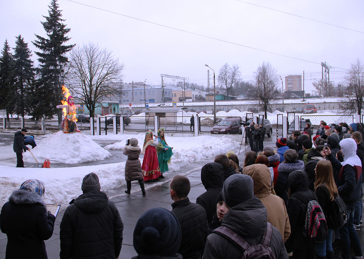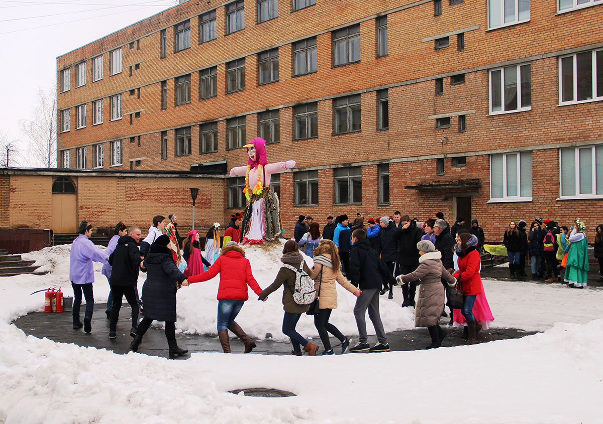 Спортивно-развлекательная программа «Широкая Масленица» 22 февраля 2017 года в ГПБОУ МО Структурное подразделение №1 «Колледж «Коломна» прошел праздник «Широкая Масленица». 22 февраля 2017 года в ГПБОУ МО Структурное подразделение №1 «Колледж «Коломна» прошел праздник «Широкая Масленица». Представители Коломенского завода с удовольствием посетили мероприятие. Напомним, что Коломенский завод связывают долгие годы сотрудничества с училищем - одним из первых профессиональных учебных заведений начального профессионального образования в Московской области. Основатели завода открыли его для подготовки рабочих. Сегодня многие учащиеся проходят производственную практику на предприятии, а в дальнейшем связывают с ним свою профессиональную деятельность. Руководитель структурного подразделения №1 «Колледж «Коломна» О.В. Королев и директор колледжа А.М. Ширкалин поздравили учеников и преподавателей с окончанием зимы. На Руси считалось, что человек, который весело провел масленичную неделю, будет удачлив в течение всего года! Поэтому издавна проводы зимы отмечались весело, с широким размахом, сопровождаясь обильными угощениями, среди которых главное место занимали блины. В начале праздника ребят приветствовали скоморохи, Зима, Масленица и Весна. Яркая творческая программа развернулась на спортивной площадке перед колледжем. Обучающиеся всех отделений присоединились к задорному празднику. Любой желающий мог принять участие в традиционных народных забавах. Началось веселье дружным большим хороводом, а продолжилось удалыми песнями, плясками, состязаниями на силу и ловкость. Не обошлось и без чая с блинами, которые испекли замечательные повара колледжа, а также традиционного «огненного» обряда проводов зимы – сжигание чучела Масленицы. Программа праздника была продумала основательно. Учащиеся с большим удовольствием слушали народные масленичные мелодии и песни, танцевали. Всем известная русская пословица уже стала девизом в жизни учащихся и преподавателей колледжа: «Когда живется весело, то и работа спорится».