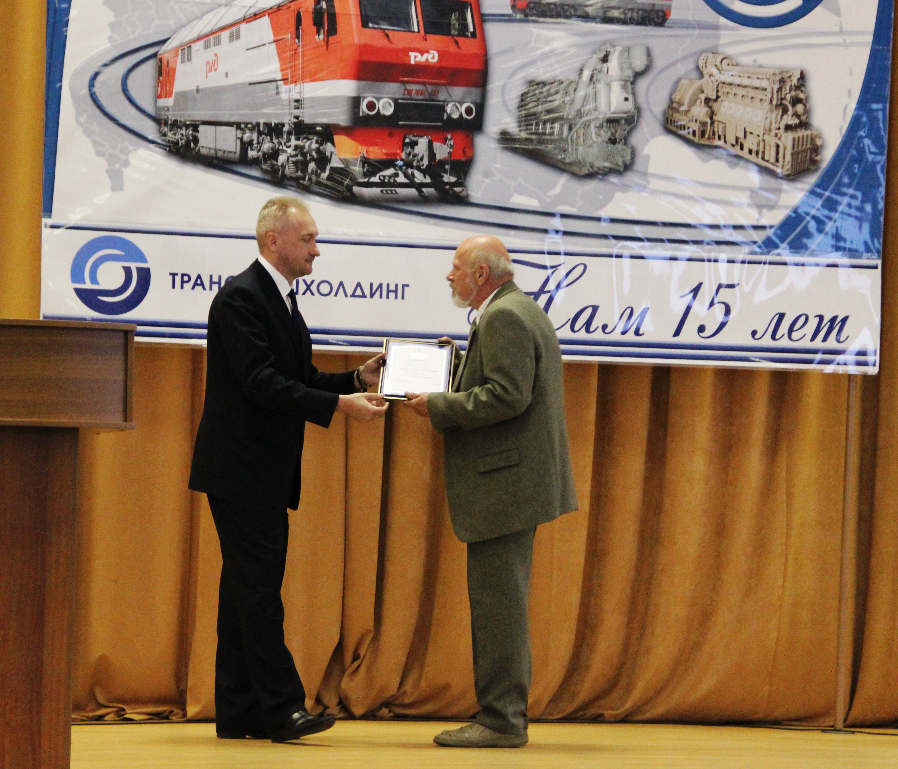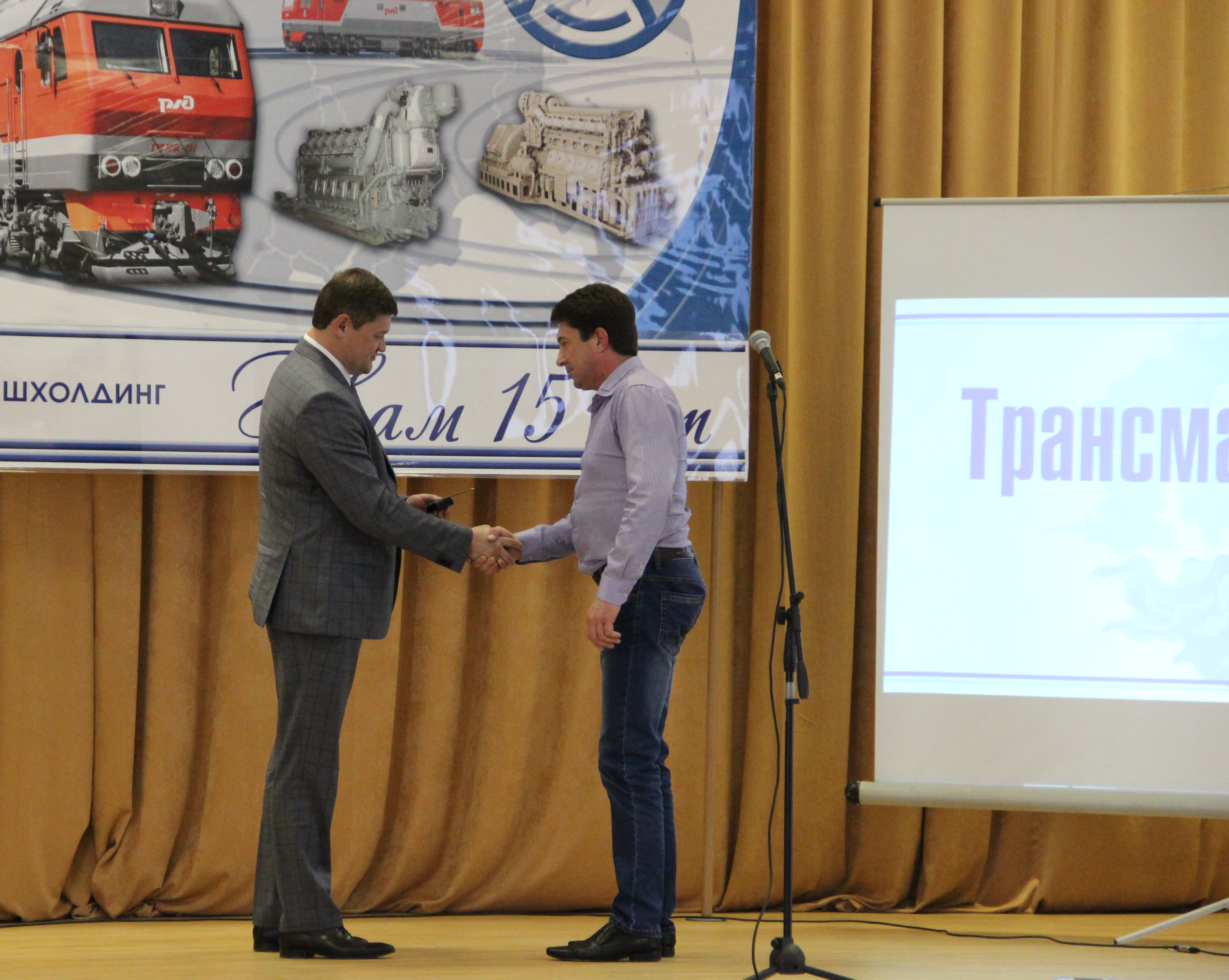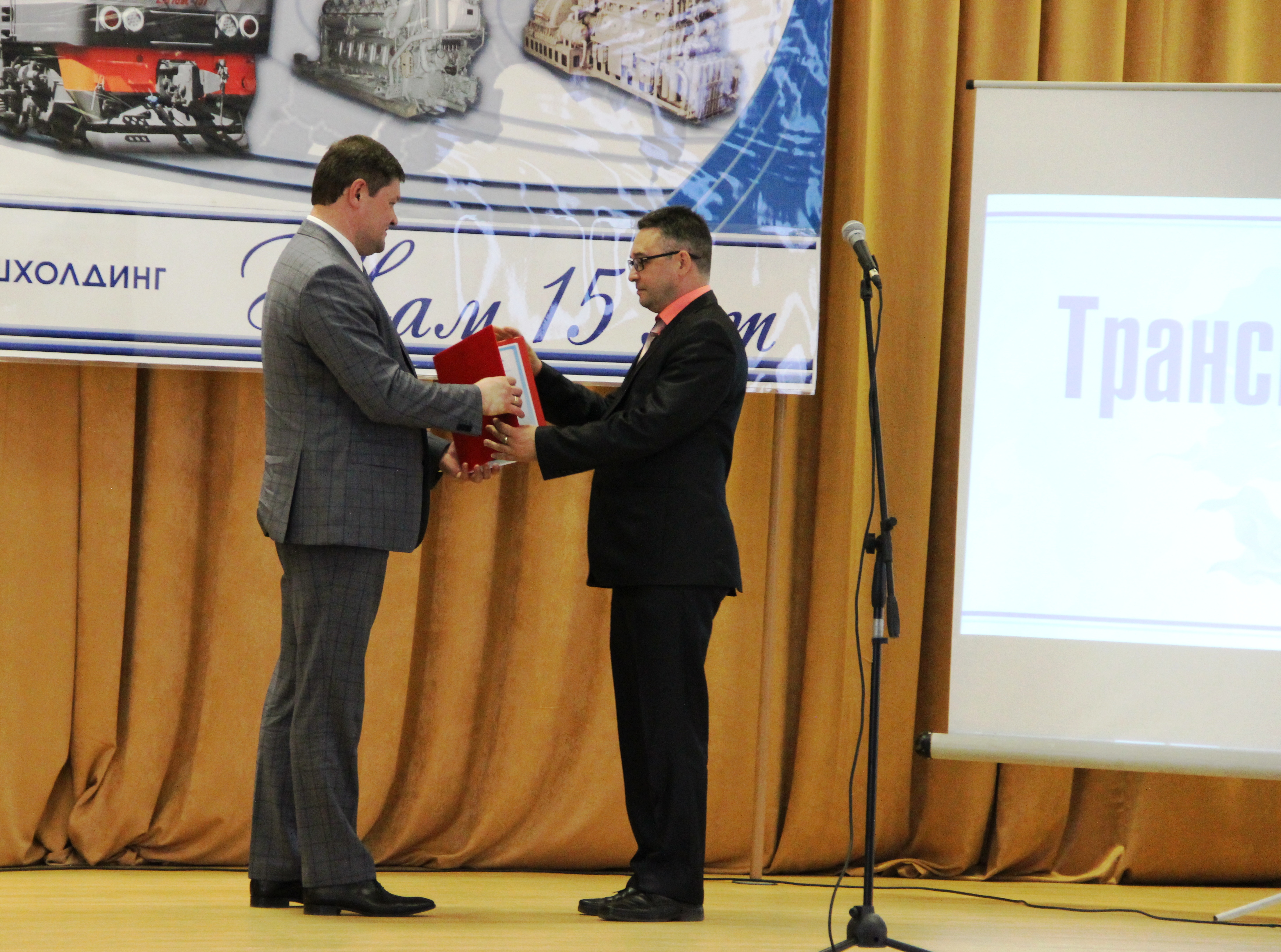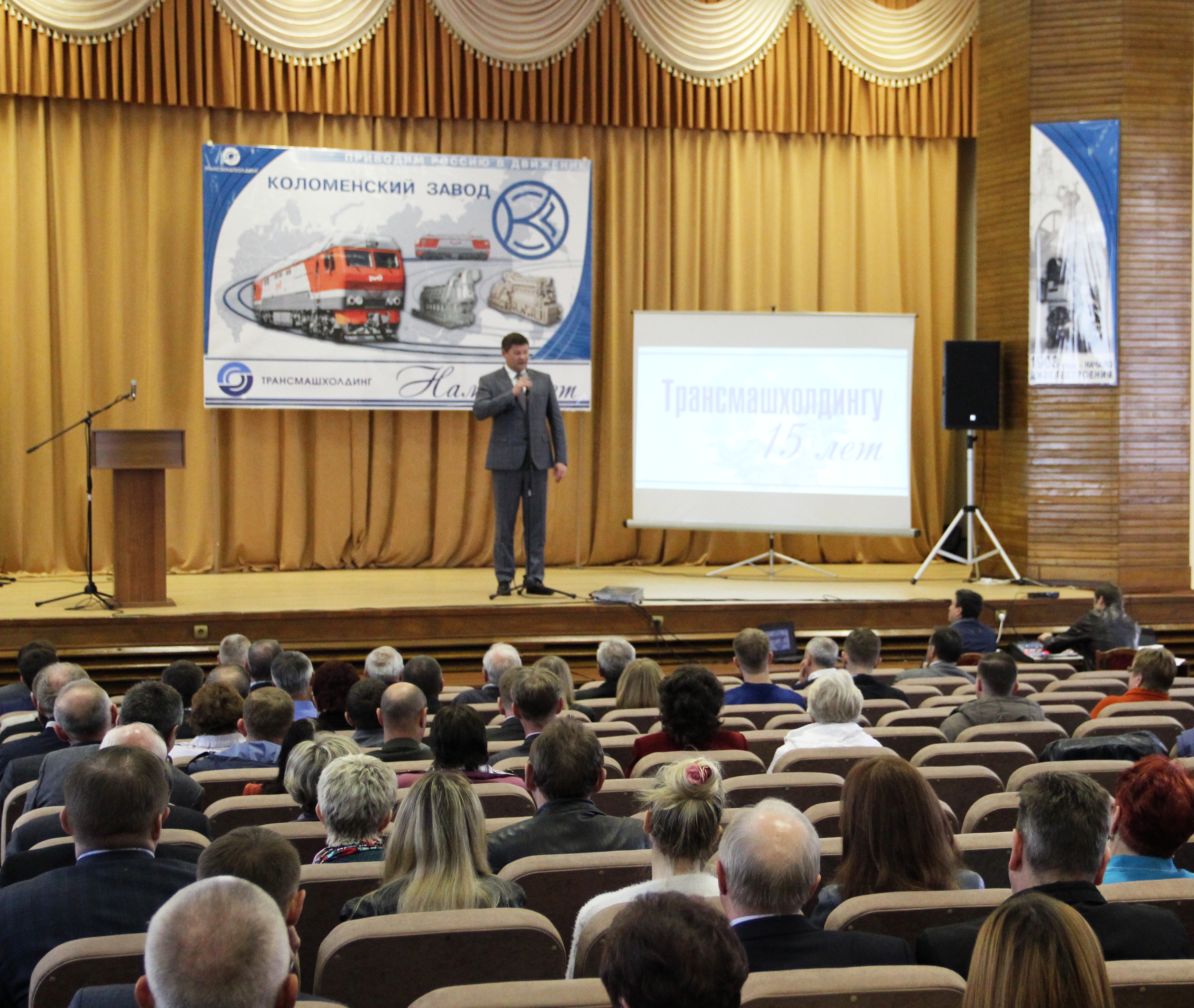 Торжественное собрание, посвященное 15 –летию ЗАО «Трансмашхолдинг» 3 мая 2017 года в актовом зале инженерного корпуса ОАО «Коломенский завод» состоялось торжественное собрание, посвященное 15 –летию ЗАО «Трансмашхолдинг». 3 мая 2017 года в актовом зале инженерного корпуса ОАО «Коломенский завод» состоялось торжественное собрание, посвященное 15 –летию ЗАО «Трансмашхолдинг». Глава городского округа Коломна Д.Ю. Лебедев поздравил коллектив Коломенского завода с 15-летием работы в составе одного из лидеров мирового машиностроения – в составе компании «Трансмашхолдиг». История Коломенского завода неразрывно связана с историей города уже более 150 лет. Теперь через это предприятие наш город опирается и на Трансмашхолдинг, интенсивно осваивающий самые современные технологии. Высококвалифицированный персонал Коломенского завода делает честь и холдингу, и городу – на него равняется молодежь Коломны. В год 840-летия Коломны эта неразрывная связь города и Коломенского завода ощущается особенно остро. Д.Ю. Лебедев пожелал Трансмашходингу, всем его предприятиям успехов в развитии, в осуществлении намеченных планов. Директор инженерно-производственного центра А.В. Мельников в своем выступлении отметил, что Трансмашхолдинг является лидером на рынке транспортного машиностроения России. Предприятия компании производят магистральные и промышленные электровозы, магистральные и маневровые тепловозы, грузовые и пассажирские вагоны, вагоны электропоездов и метро, рельсовые автобусы, вагонное литье и другую продукцию. ЗАО «Трансмашхолдинг» входит в десятку крупнейших мировых производителей, коллектив компании составляет болеет 40 тысяч работников. А.В. Мельников назвал основные результаты, достигнутые ОАО «Коломенский завод» в период работы в составе ЗАО «Трансмашхолдинг»: «В течении 12 лет Коломенский завод не только не утратил свои позиции на отраслевом рынке, но и значительно расширил диапазон выпускаемой продукции: освоено серийное производство пассажирских тепловозов ТЭП70БС и ТЭП70У, пассажирских электровозов ЭП2К. Мы вышли на новый, очень важный для предприятия рынок дизель-генераторов для атомных электростанций. Для производства новой продукции в рамках инвестиционной программы приобретено уникальное оборудование для механической обработки основных компонентов дизелей. В 2016 году введен в эксплуатацию портальный обрабатывающий центр блоков цилиндров в цехе М-10, завершается отладка токарно-фрезерно-сверлильного обрабатывающего центра с ЧПУ для комплексной обработки коленчатых валов в цехе М-6.» За достигнутые успехи в труде ряд работников ОАО «Коломенский завод» отмечен наградами. Почетной грамотой Московской областной Думы награжден: начальник участка промышленной полиграфии Игорь Юрьевич Соленков. Благодарственными письмами Московской областной Думы награждены: ведущий специалист по кадрам отдела кадров Светлана Вячеславовна Александрова; старший мастер участка заготовительно-рамно-кузовного цеха Николай Аркадьевич Булахов. Почетными грамотами ЗАО «Трансмашхолдинг» награждены: заместитель начальника отдела информационных технологий Андрей Михайлович Белкин; начальник планово-экономического управления Людмила Евгеньевна Додонова; директор по гарантийному и сервисному обслуживанию Александр Юрь