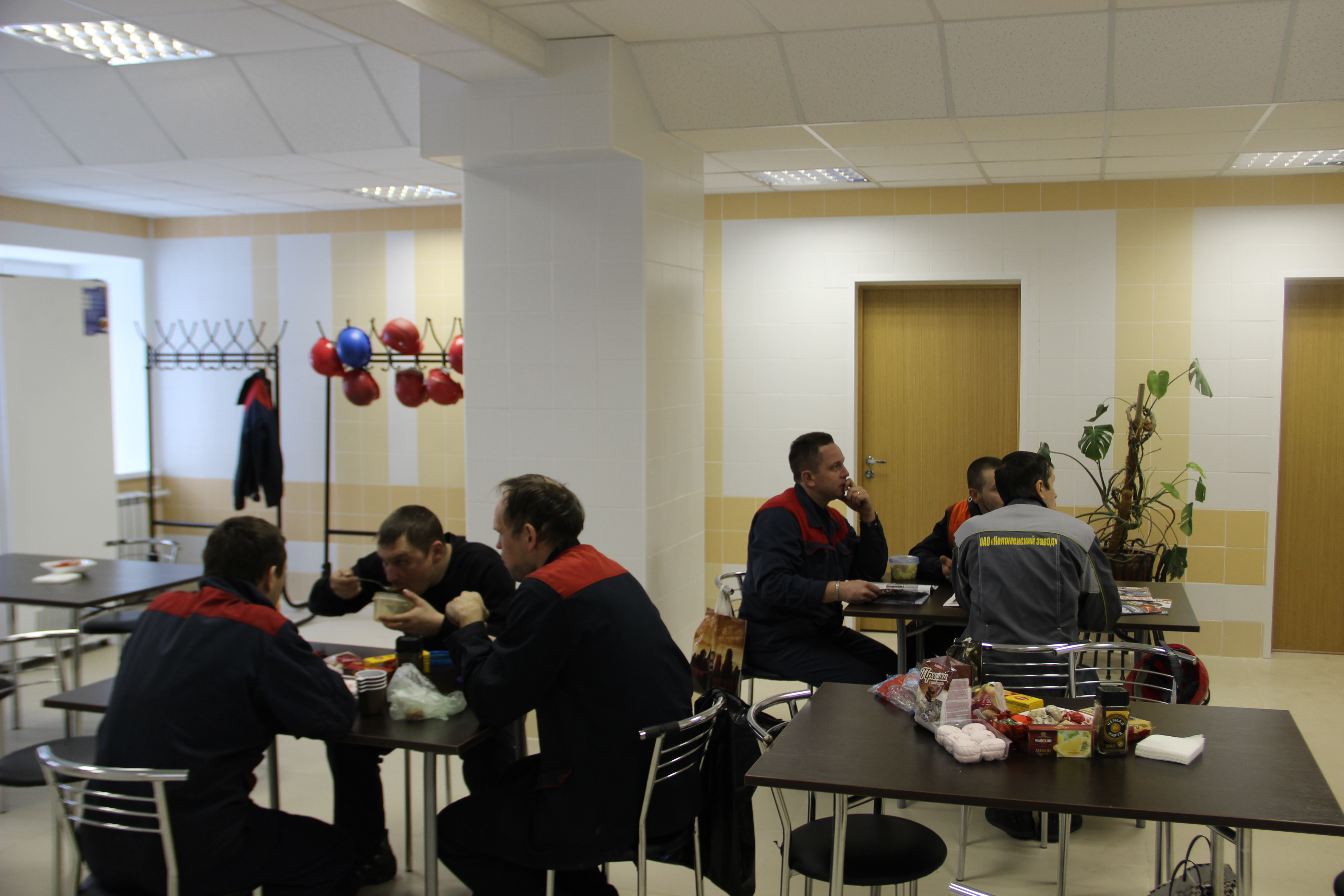 В январе в машиносборочном цехе открылась долгожданные комната для приема пищи и столовая, в которой смогут пообедать работники всех подразделений завода.