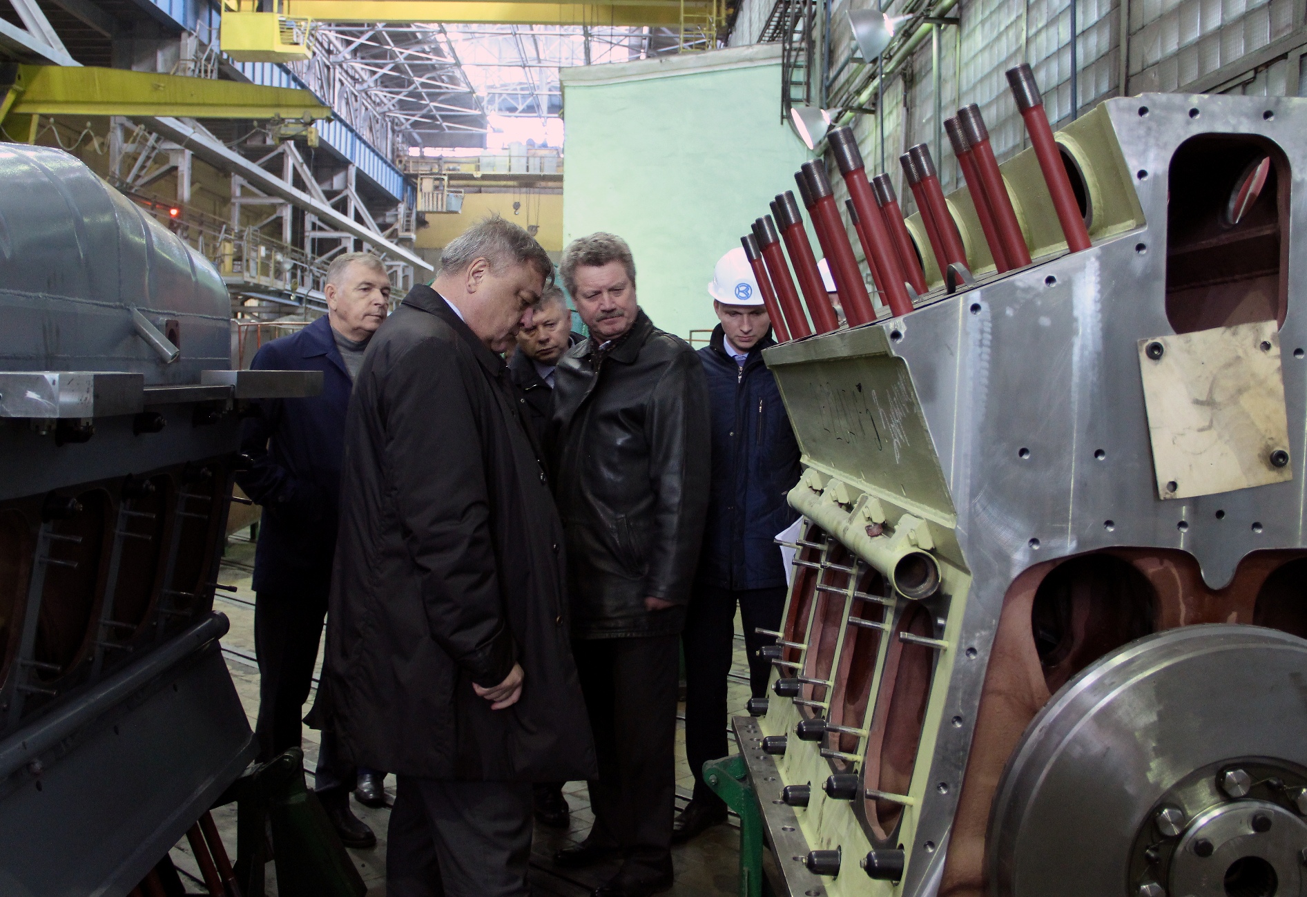 В рабочей встрече приняли участие Владимир Шнейдмюллер, вице-президент НП «ОПЖТ», советник генерального директора ЗАО «Трансмашхолдинг», Николай Лысенко, вице-президент, исполнительный директор НП «ОПЖТ», Евгений Вожакин, генеральный директор ОАО «Коломенский завод», Валерий Коссов, генеральный директор АО «ВНИКТИ», Давид Киржнер, технический директор ЗАО «РОСЛОКОМОТИВ». Участники совещания в сопровождении генерального директора ОАО «Коломенский завод» Евгения Евгеньевича Вожакина ознакомились с ходом работ по изготовлению на производственных мощностях предприятия дизель-генераторов нового поколения типоразмерных рядов Д500 и Д300, созданных в рамках Федеральной целевойпрограммы «Национальная технологическая база». В частности, гости завода ознакомились с ходом испытаний опытных образцов тепловозного дизельного двигателя 12ЛДГ300 и газопоршневого двигателя 12ГЧН26/26, работающего на природном газе.