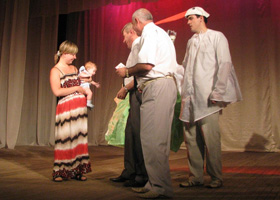 Юбилейный праздник семьи и любви 6 июля 2012 года в ДК «Тепловозостроитель» состоялся традиционный для Коломенского завода вечер чествования новобрачных и семейных пар, ставших родителями. img {border:0 !important;} 6 июля 2012 года в ДК «Тепловозостроитель» состоялся традиционный для Коломенского завода вечер чествования новобрачных и семейных пар, ставших родителями. Традиция таких поздравлений возрождена в 2010 году по инициативе профсоюзного комитета машиностроителей, состоявшееся мероприятие стало юбилейным – 10-м. Руководство завода, комитет профсоюза машиностроителей и молодежная комиссия при профкоме машиностроителей поздравили заводчан со знаменательными семейными событиями. Директор по персоналу ОАО «Коломенский завод» Юрий Масюров подчеркнул, что Коломенский завод – это не только крупное промышленное предприятие с богатой историей, известное во всем мире своей продукцией, но, в первую очередь, – это его люди, приходящие на завод и именно здесь обретающие свое профессиональное «Я» и создающие семьи. Председатель Комитета профсоюза машиностроителей В.А. Кобзев отметил положительную для предприятия тенденцию: с каждым годом увеличивается и число заводских браков, и число появляющихся на свет детей заводчан. Особенно приятно, когда браки заключаются между работниками предприятия. Именно такие семьи поздравила и вручила им подарки заместитель председателя комитета профсоюза машиностроителей Таисия Помыткина. Председатель молодежной комиссии комитета профсоюза машиностроителей инженер-конструктор УГКМ Дмитрий Толстенев представил отчет об акции по сбору денежных средств на оказание помощи детям, оставшимся без попечения родителей. Денежные средства, собранные за период проведения акции с 4 по 15 июня 2012 года, были переданы в Центр реабилитации инвалидов. Заместитель начальника Коломенского городского управления социальной защиты Лариса Ульянова поблагодарила заводчан и Молодежную комиссию комитета профсоюза машиностроителей за проявленную инициативу и вручила Дмитрию Толстеневу Благодарственное письмо городского управления социальной защиты. С новостями спортивной жизни на Коломенском заводе ознакомил присутствующих инженер по инструменту цеха М-3 Артем Попов. Заместитель председателя Московской областной организации профсоюза машиностроителей Станислав Буртасов вручил заслуженные награды победителям шахматного турнира, соревнований по картингу и футболу. Станислав Буртасов подчеркнул, что все награжденные, а также и другие работники, выступающие на городских соревнованиях, – лучшая рекомендация Коломенскому заводу как предприятию, поощряющему здоровый образ жизни своего персонала, развивающему традиции заводской рабочей спартакиады. Традиционный для торжества праздничный концерт на этот раз был подготовлен силами талантливых работников предприятия и стал финальным этапом заводской «Минуты славы» – конкурса талантов Коломенского завода. Финалисты конкурса представили на суд зрителей зажигательные танцы, проникновенные песни современных исполнителей, авторские песни, поэтические произведения, театральные сценки. По итогам голосования зрительного зала победителями стали работники цеха нормалей фрезеровщик Степан Князев, токари Сергей Козлицкий и Евгения Лесцова, представившие с